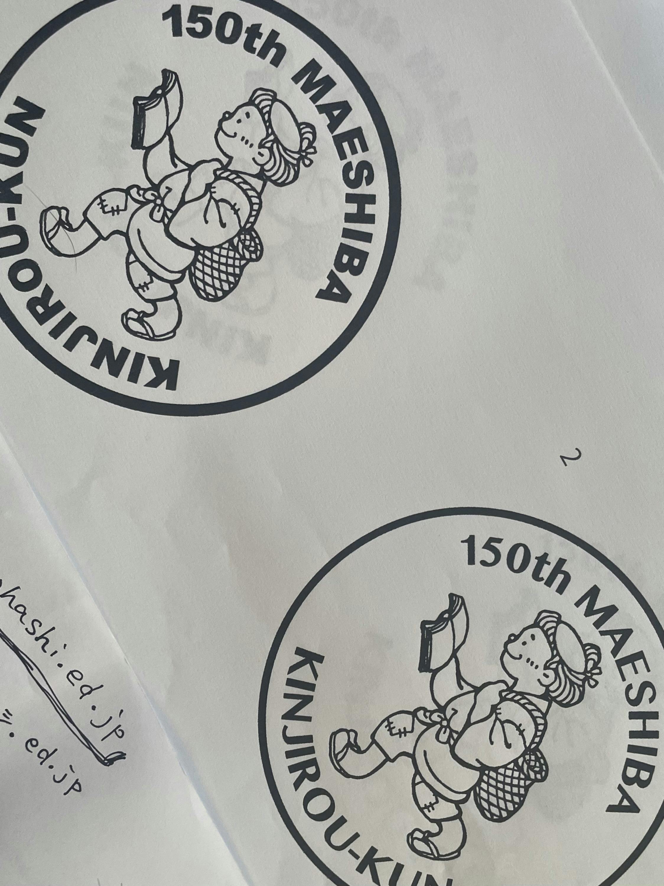 前芝小学校の二宮金次郎は薪ではなく魚篭を担いでることから、前芝寄付分のシールシートのパッケージに魚篭を背負った金次郎くんの丸シールを別で作ることになり、デザイン画を校長先生にお見せしたところ、「贈答用にクリスタルの物を業者に製作してもらう予定ですが。この絵を使わせてもらいたい。」と言われましたので、快諾させていただきました(^^)