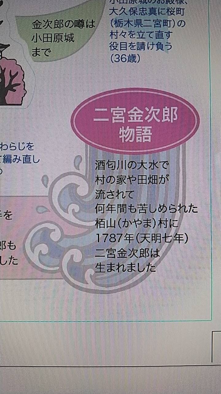 先日訂正を頂いた二宮金次郎の生まれ年、うっかり、私よりも歳下になっておりましたが、デザイナーに頼んで直してもらいましたよ〜(^^)