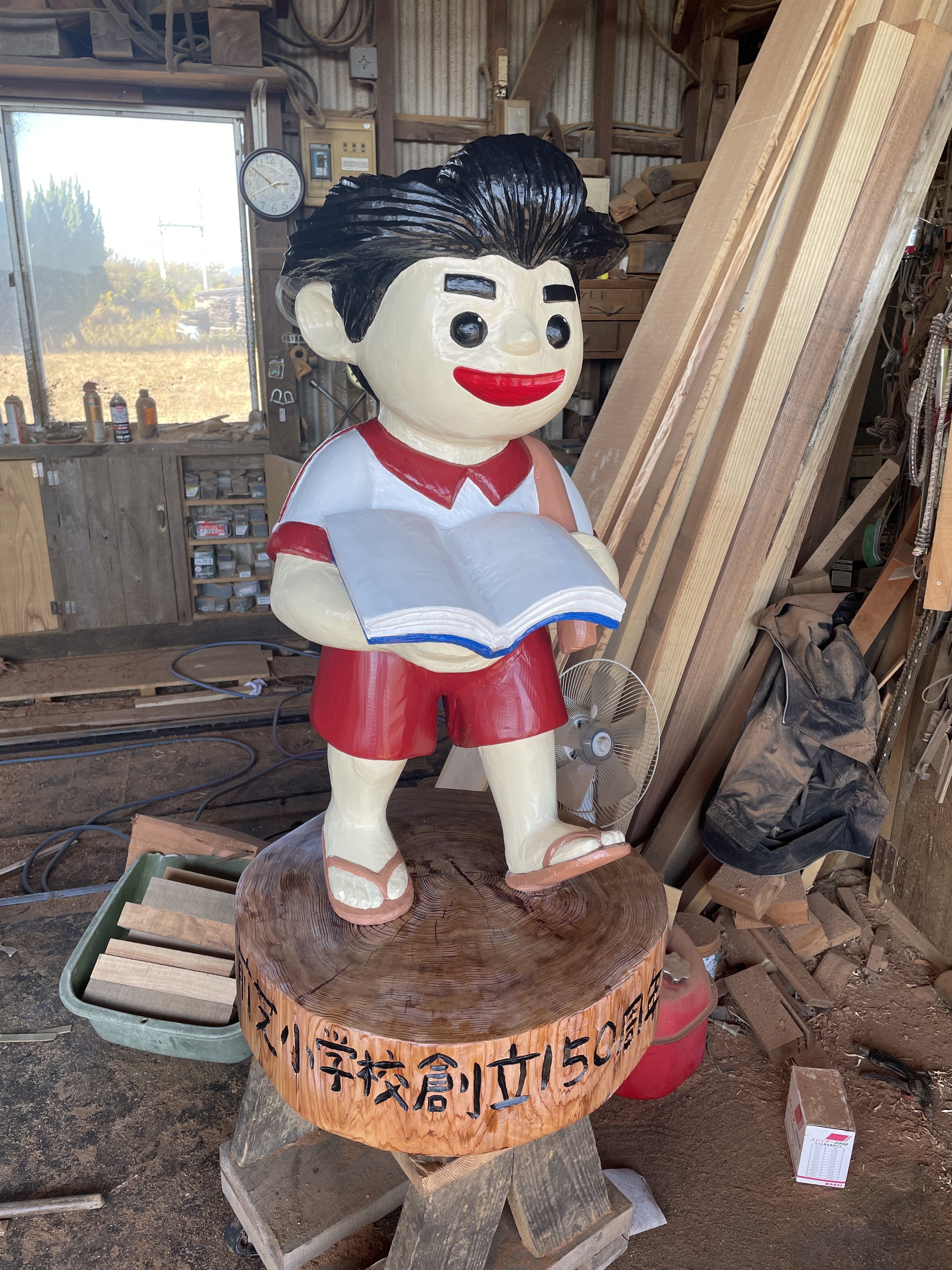 2023/10/31 00:57本日、主人のチェーンソーアートotaが依頼を受けて製作の、前芝小学校の金次郎くん像が完成いたしました。11月18日の前芝小学校創立150周年記念イベントの際、除幕式でお披露目になるそうです。今日、校長先生が、像の写真を撮りに来たついでに、我々夫婦にも、式典で一言ずつ挨拶を‥と言われたので、ちょっと緊張です(^◇^;) もっと見る