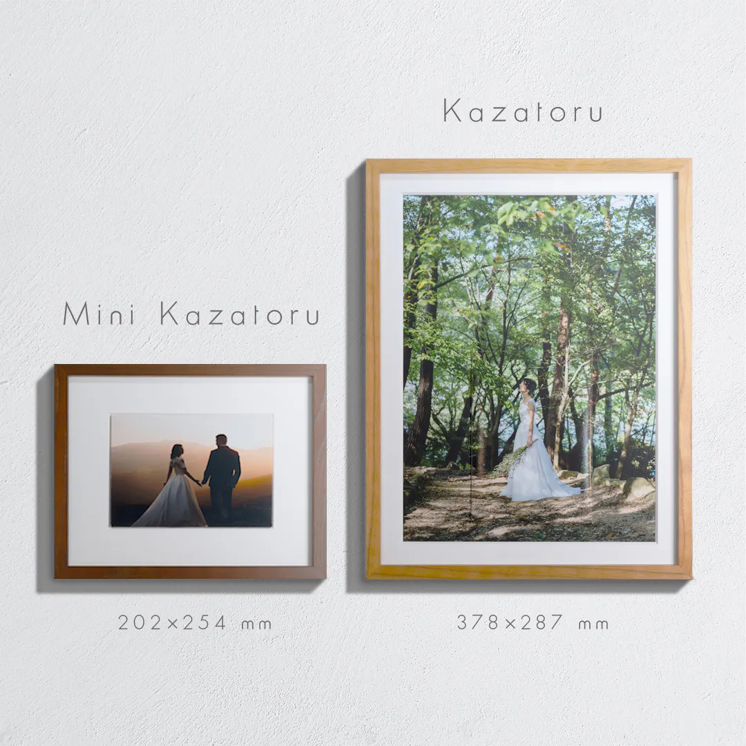 Kazatoruは手作業によって製造されているため、製品ごとに微妙な違いや個体差が生じることがあります。製品イメージと実際の製品で色合いや質感などが異なる場合がありますが、製品の特性としてご理解していただきますようお願いいたします。また、解像度が低い写真データをご使用の場合、写真がぼやける可能性があります。A3サイズで綺麗に現像できるサイズ(目安として 3508 × 4961 pixel以上)の写真の使用を推奨しております。