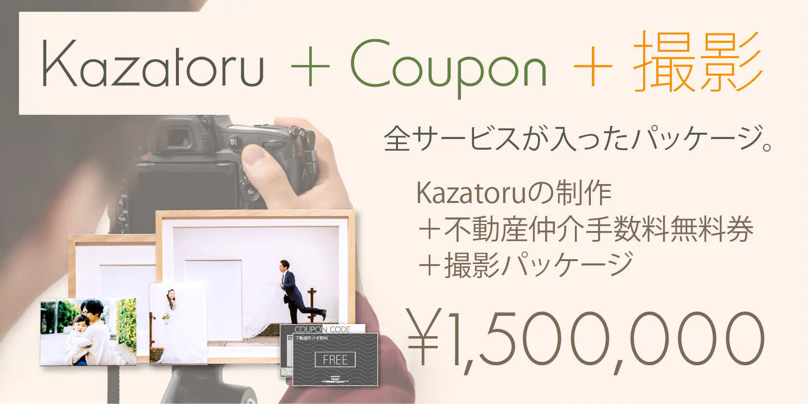 ◯¥1,500,000コース:ご指定された写真でMini Kazatoru+Kazatoruを1点づつ制作+ 専任カメラマンによる写真撮影+ 指定不動産仲介手数料無料チケットを同封