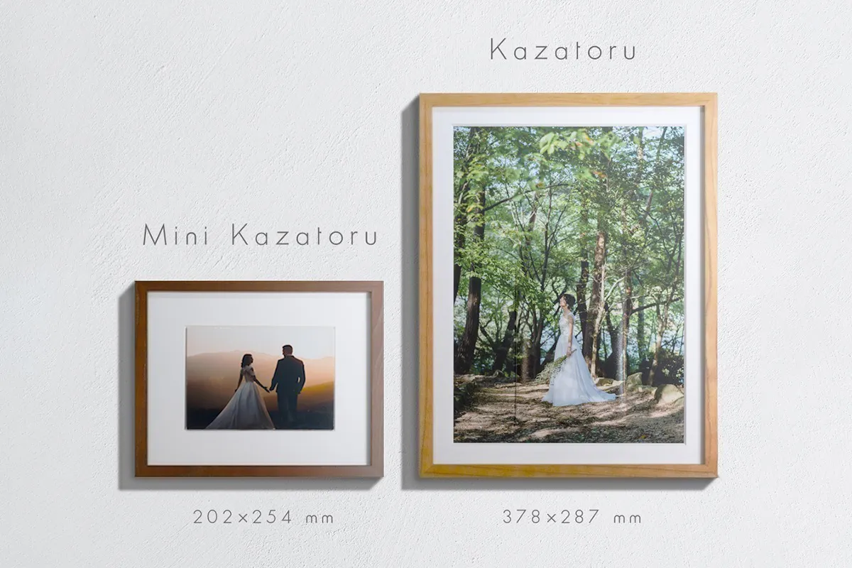 Kazatoruは手作業によって製造されているため、製品ごとに微妙な違いや個体差が生じることがあります。製品イメージと実際の製品で色合いや質感などが異なる場合がありますが、製品の特性としてご理解していただきますようお願いいたします。また、解像度が低い写真データをご使用の場合、写真がぼやける可能性があります。スタンダードカザトルの場合はA3サイズで綺麗に現像できるサイズ(目安として3,508×4961pixel以上)の写真の使用を推奨しております。ミニカザトルの場合は封筒サイズ(114x162mm)で綺麗に現像できるサイズ(目安として1346×1913pixel以上)の写真の使用を推奨しております。
