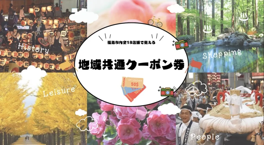 福島市内全18店舗で使用できる「地域共通クーポン券」です。