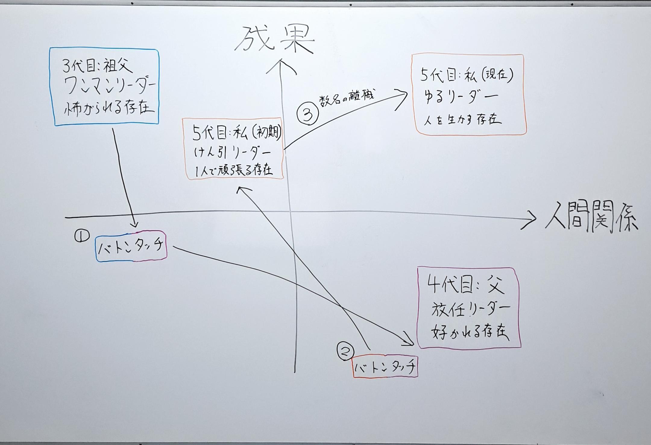 そこで、立て直しの意味も込めて祖父から父へバトンが渡されます。