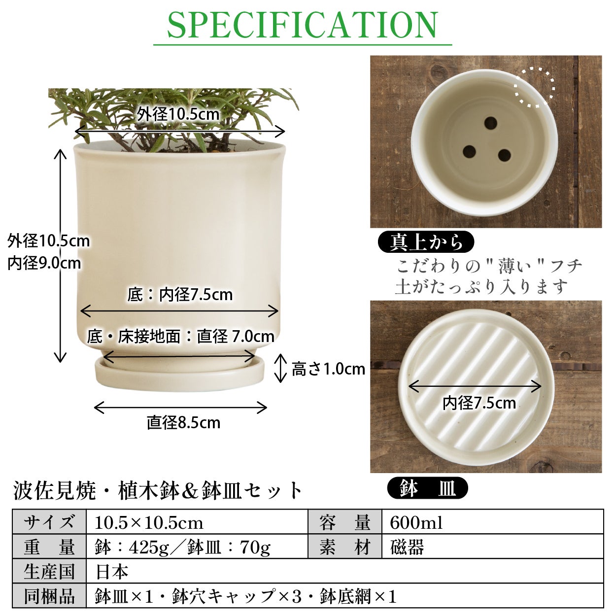 ・植木鉢と鉢皿セット。専用キャップ、鉢底網付き。
