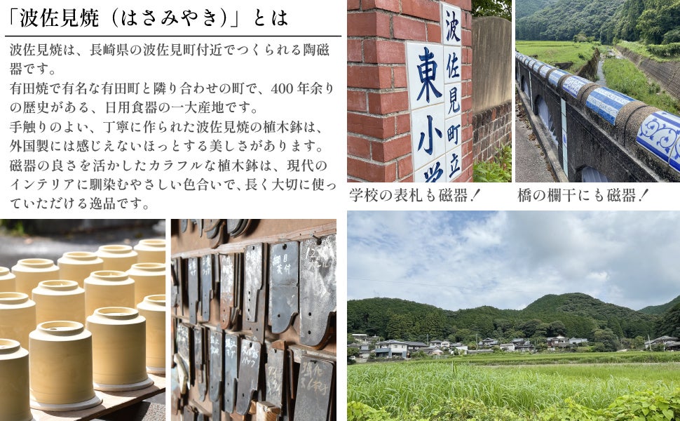 食器の一大産地である有田・波佐見地域にも黄金期がありました。過去に、ホテル、旅館、料亭が季節ごとに料理にあわせて食器を一新していた時期があり、当時は1日何十万個も生産し、全自動の機械がフル回転していたそうです。その時代が過ぎ、多くの全自動機械は錆びついて、苦しい時期が今も続いています。腕のいい職人さんの高齢化がすすみ、若者の参入が非常に少なく、40代が「若い!」ともてはやされる状態とのこと。この植木鉢を通じて、国内の窯業をぜひ応援してください!