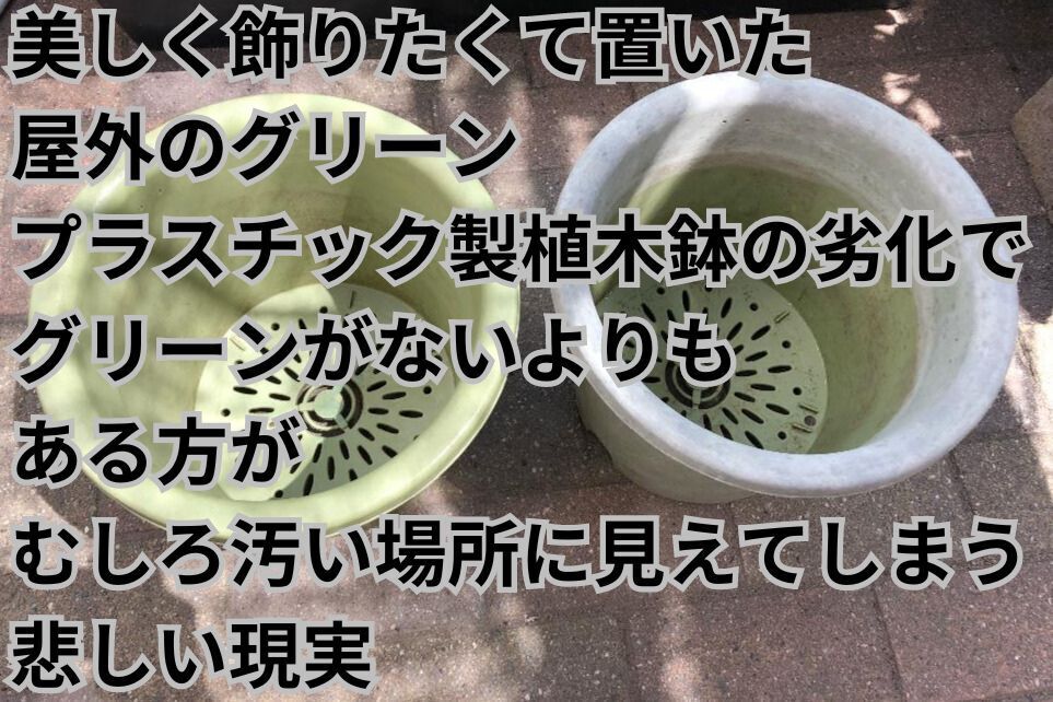 一目惚れして買った淡い黄色やグリーンのカラフルなプラスチックの植木鉢。数か月経った頃には色褪せて、目に見えて劣化。仕方ないとあきらめつつも、かわいくなったはずのベランダが薄汚れて見えてしまうことが、とても残念でした。
