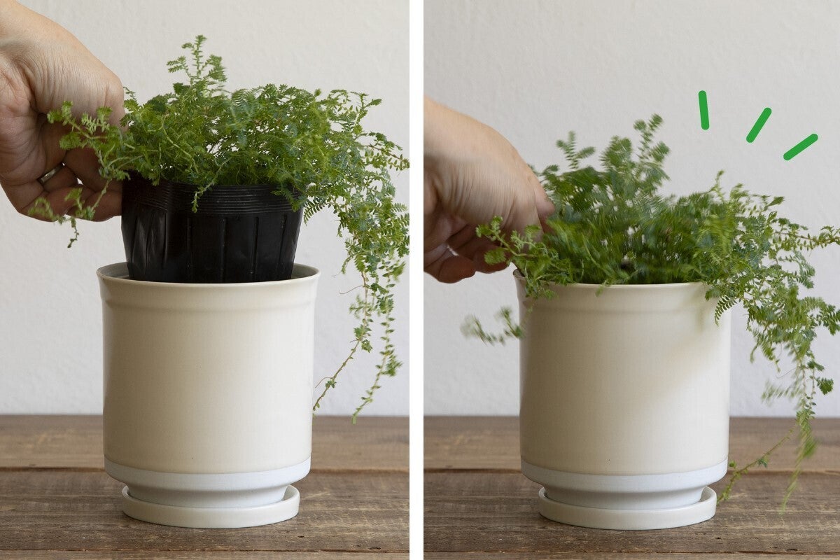 「とりあえずポン」でもかわいく飾れるように、9cmサイズのポットがすっぽり入るサイズにしました。