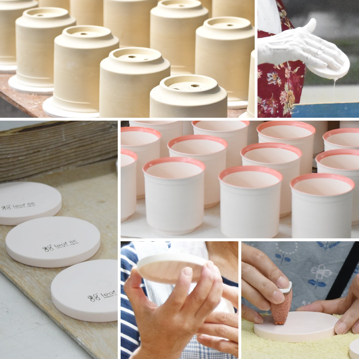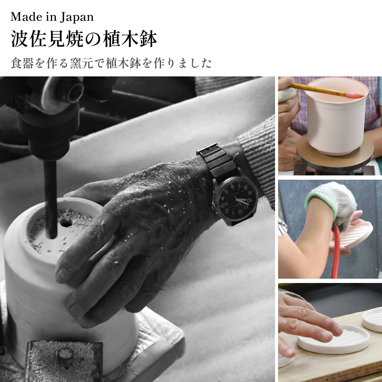 こうして丁寧に作られた国産の植木鉢には独特の「やさしさ」があります。細部まで美しいフォルムと美しい色味は、日本人の感性の集合体。外国製には出せない、手に取ったときの優しい肌触りがほっこりする植木鉢です。
