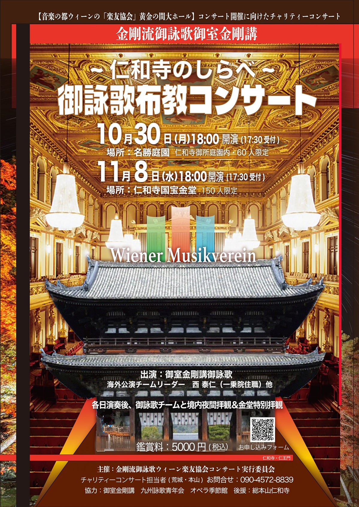 10月30日(月)・11月8日(水)には、オーストリア・ウィーン楽友協会『御詠歌コンサート』開催に向けたチャリティーコンサートがここ仁和寺にて行われます。