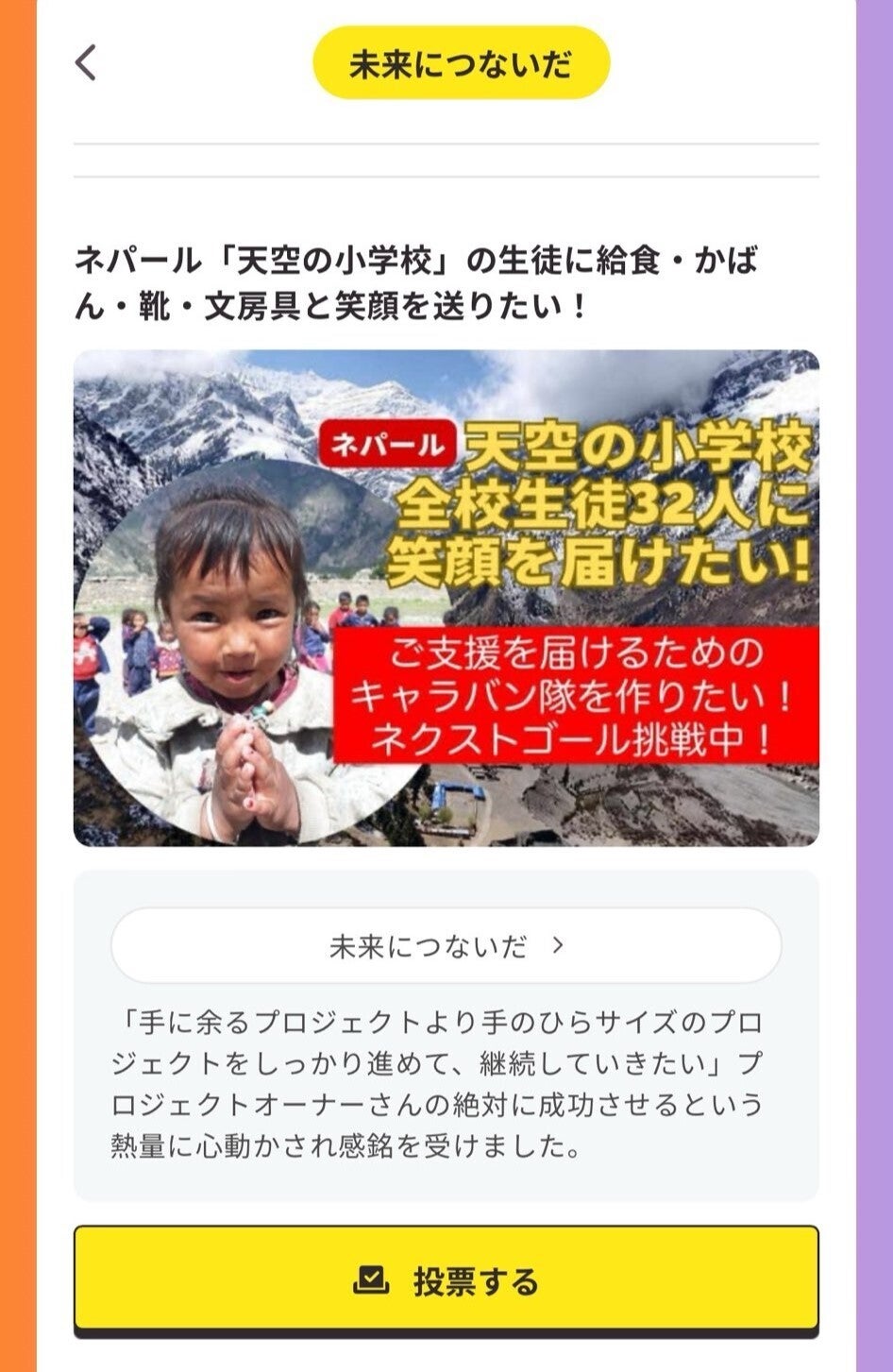 ② アワード特設サイトhttps://camp-fire.jp/awardsの中から【未来につないだ】カテゴリより、当プロジェクトを選びXで投稿 ※ハッシュタグやメンションは消さないでくださいね!