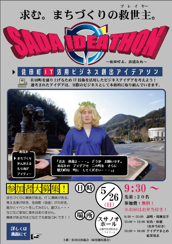 とにかく故郷である地元・佐田町が好きで、ここが年々と廃れていくのが非常に寂しく思います。時代の流れもあり、地方の片田舎の町が徐々に廃れていくのは仕方ないことかとも思います。