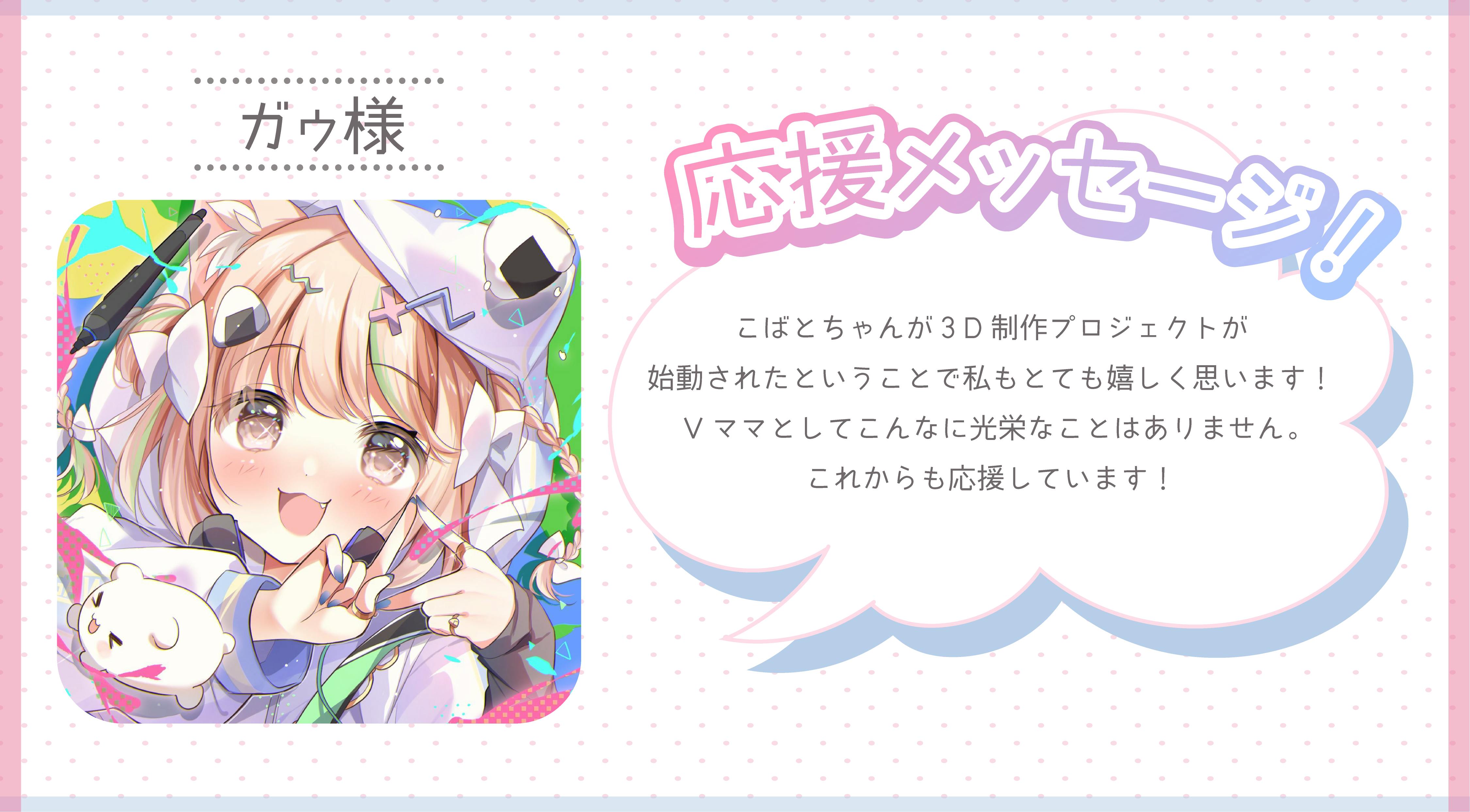 ▲こちらのプランを支援頂いた方のリクエスト曲を3D姿のこばとが歌います!
