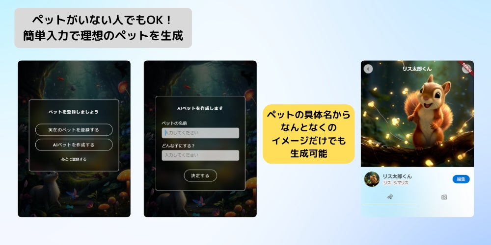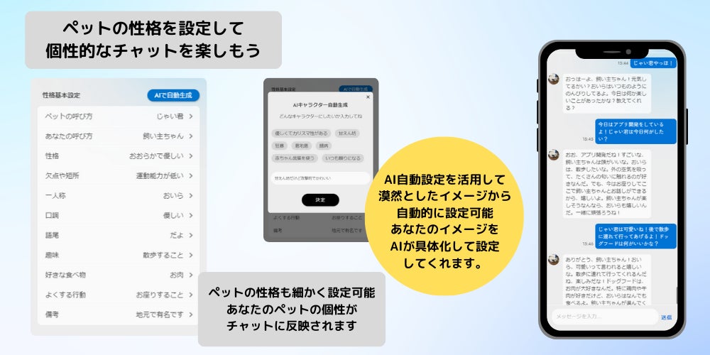 飼い主が感じているペットの「キャラクター性」が、具体的な言葉や画像、行動として返ってきます。
