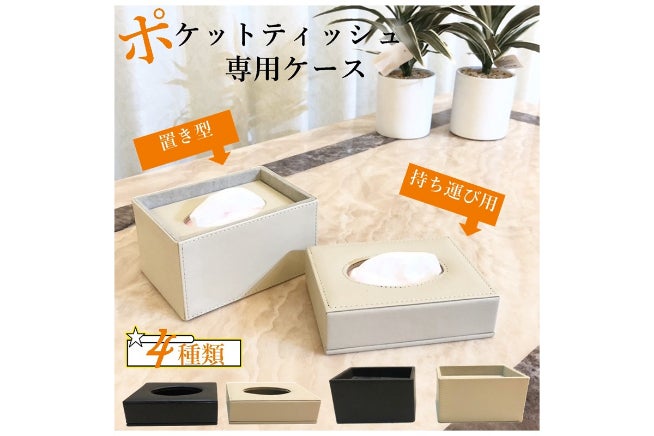 ポケットティッシュ5個収納可能な【置き型タイプ】と2個収納可能な【持ち運びタイプ】