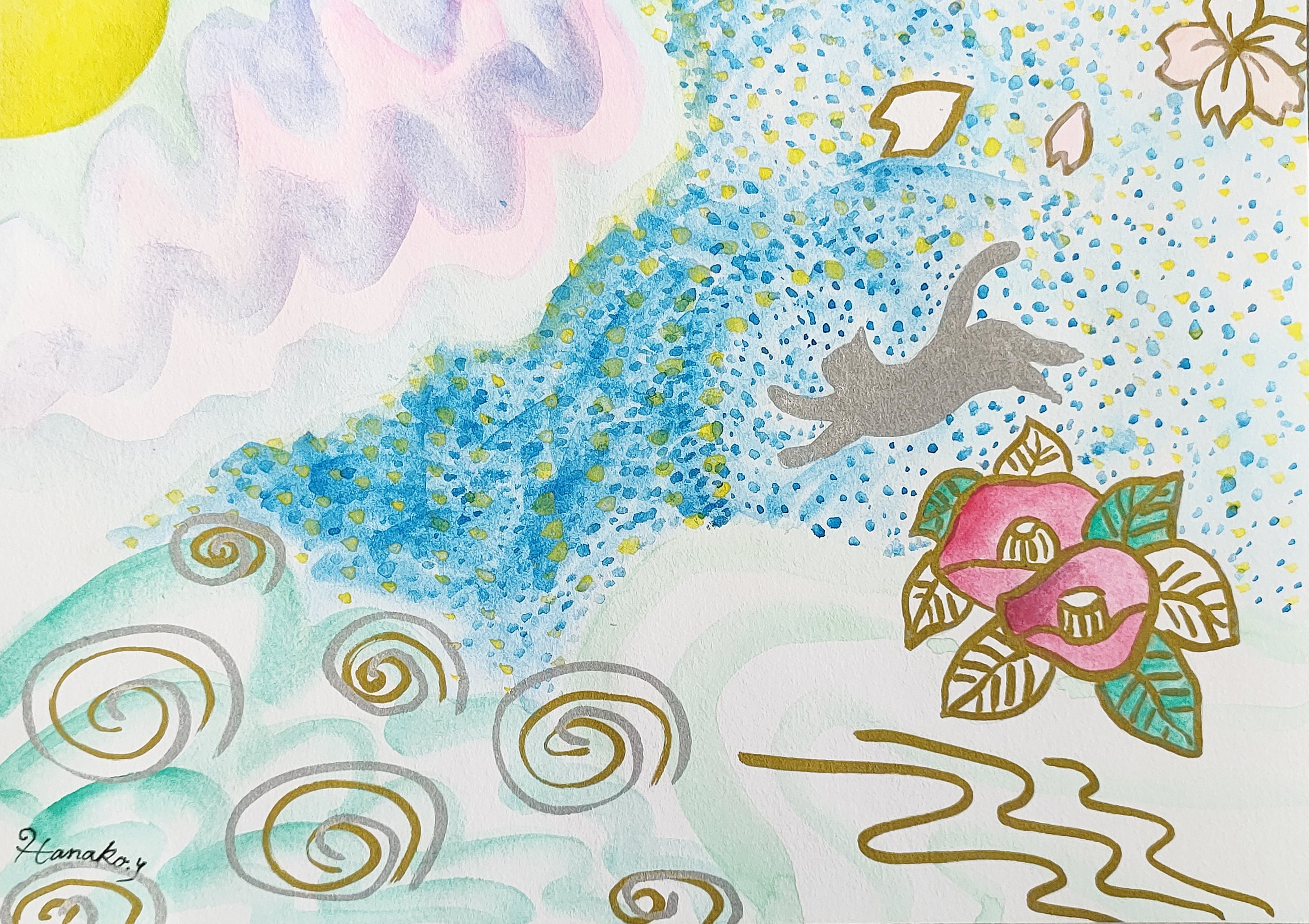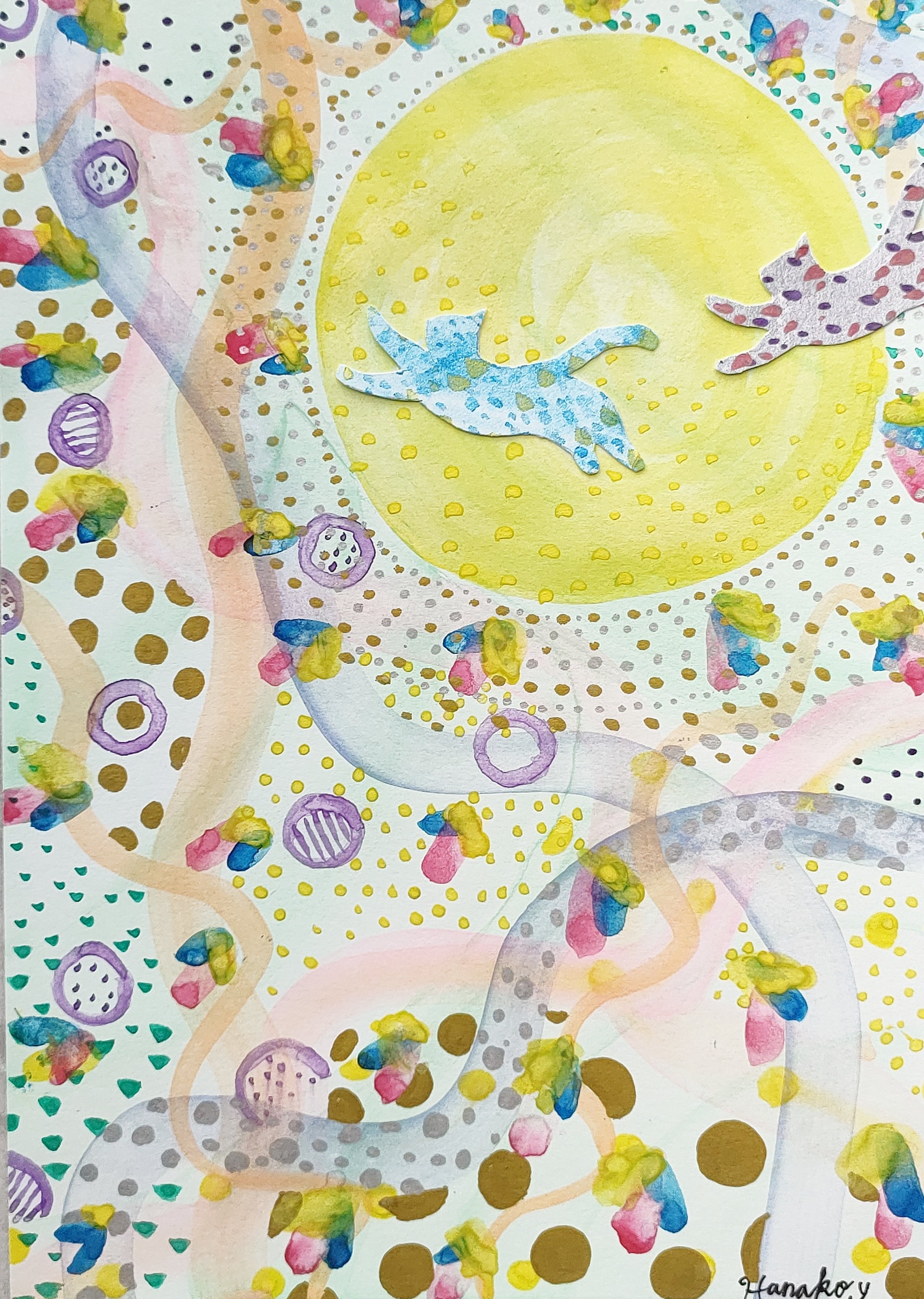 上記の手法を踏まえ、インスピレーションのままに直感的に仕上げた独創的な癒やしのアートが