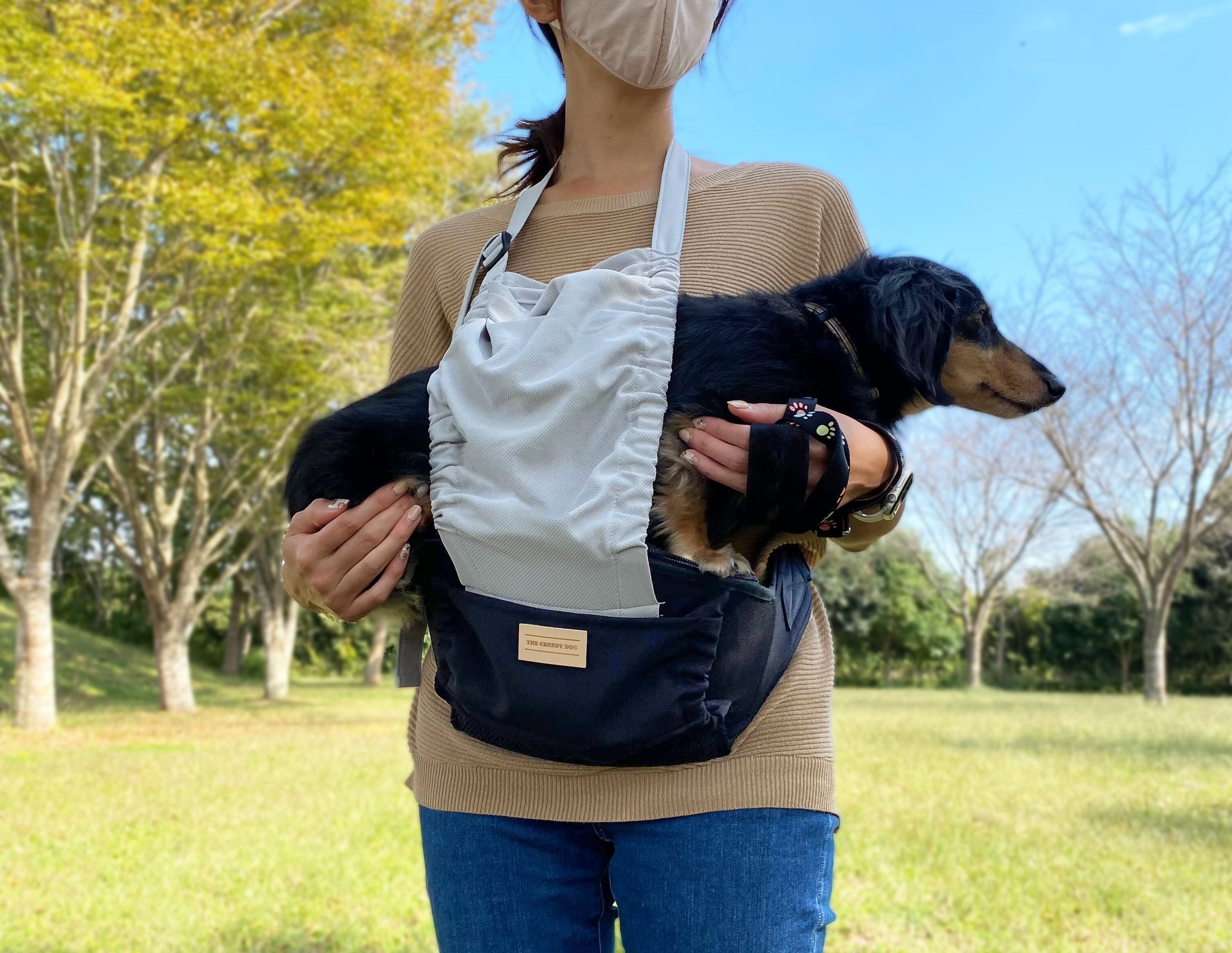 お散歩は、ワンちゃんたちにとってとても大切な時間です。ですが、お散歩中に高齢のワンちゃんが歩きたがらなくなってしまったり、集合住宅の共用スペースではワンちゃんを歩かせてはいけないことも多く、ご自宅から出るまでは抱っこが必要なところも増えています。日本エイテックスの「ヒップシート~ちょい乗せできるお散歩ポーチ~」は、そのような普段の生活においてちょっと抱っこする場面でポーチの上にワンちゃんを乗せることができ、飼い主の腕の負担を軽減する便利な商品です。
