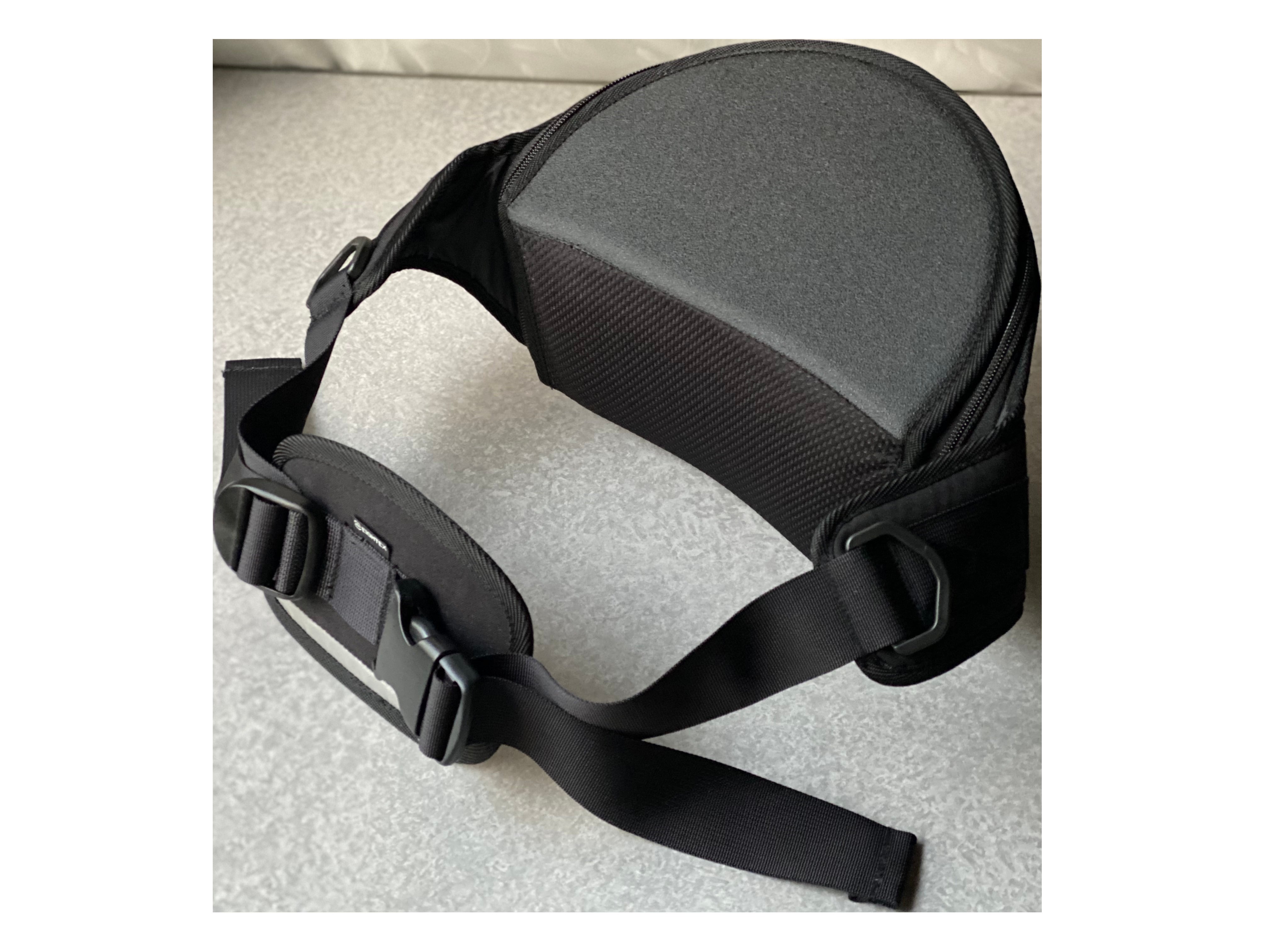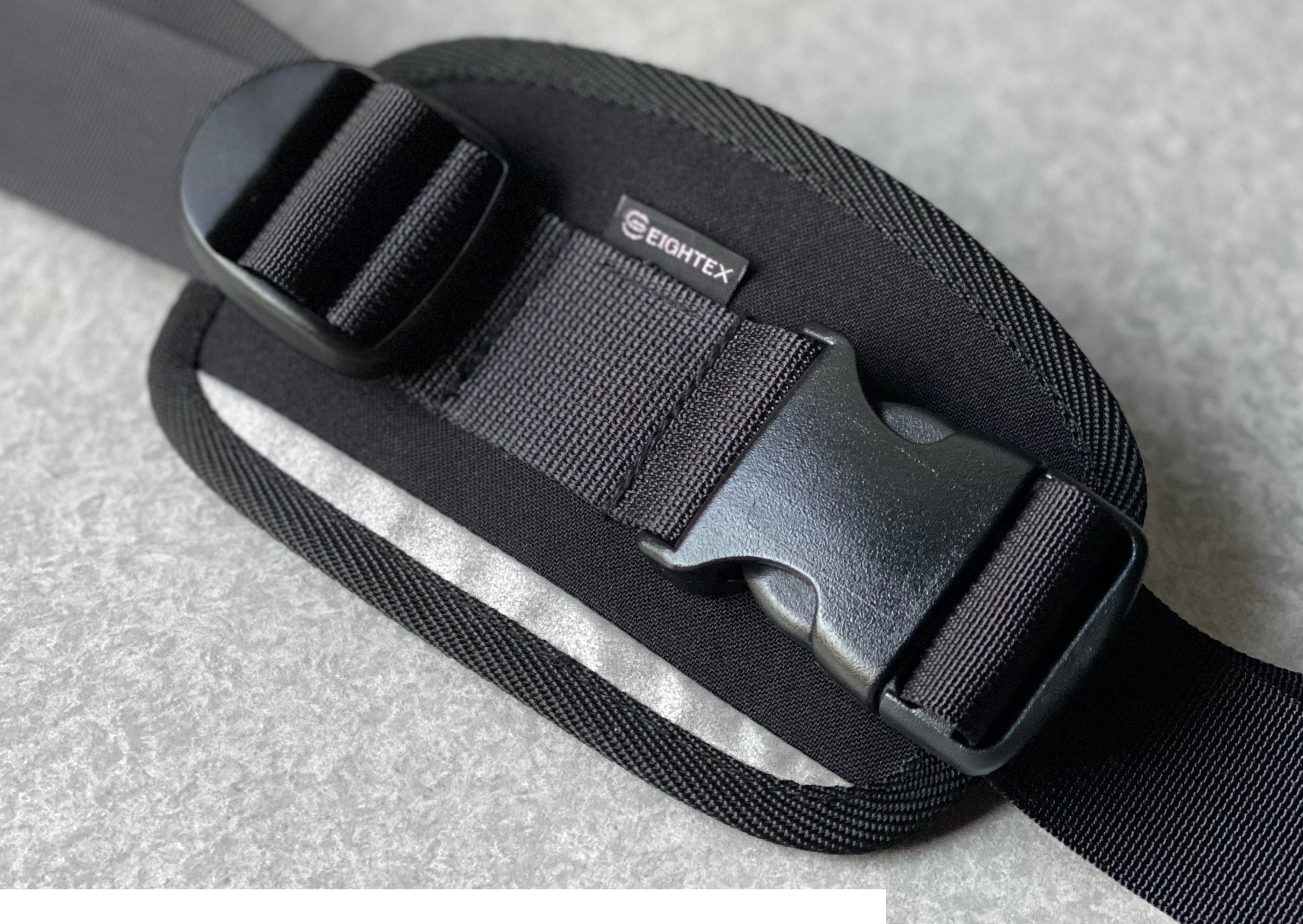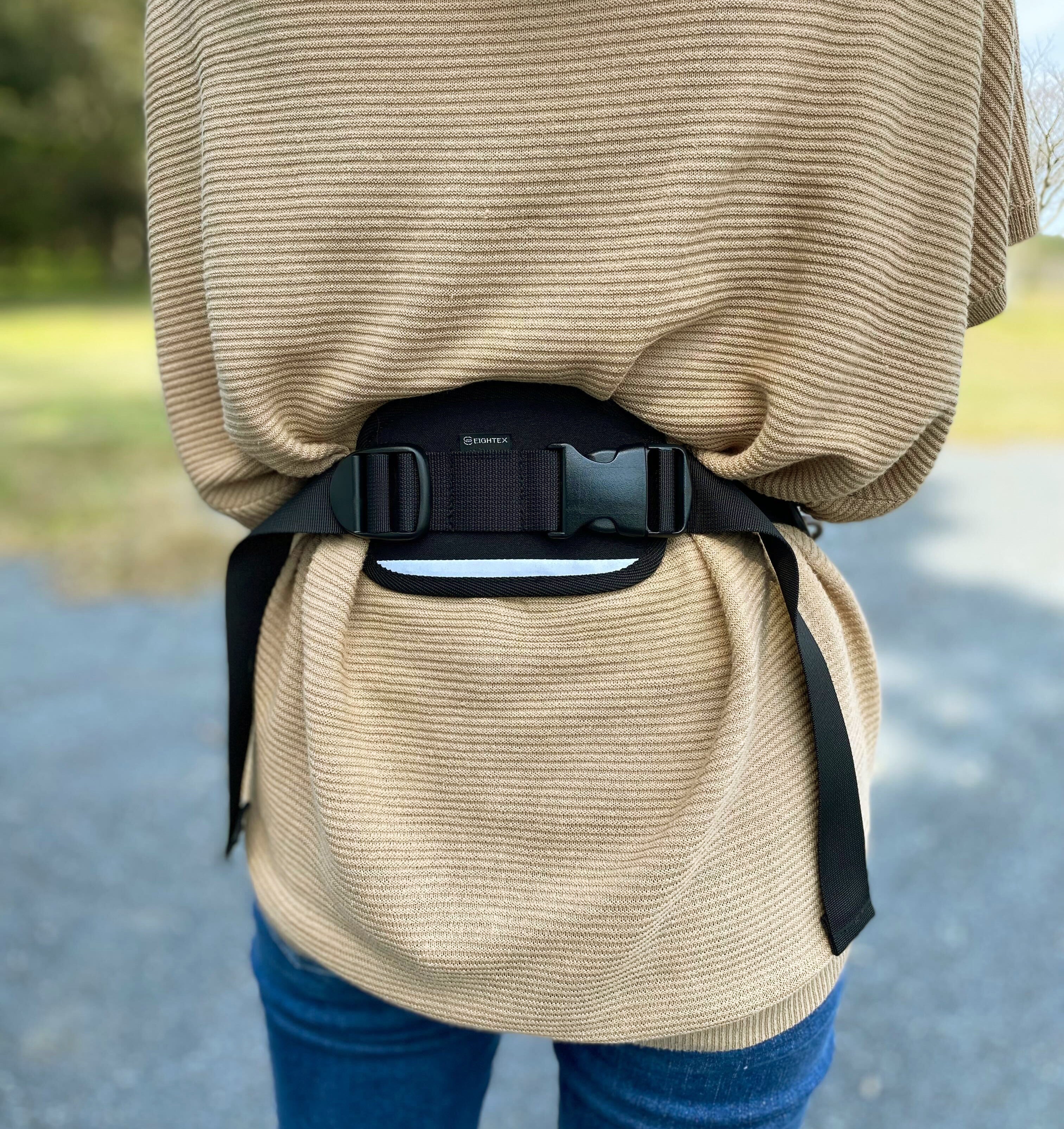 ②ワンちゃんの重みをウエストベルトと背面パッドで分散します。