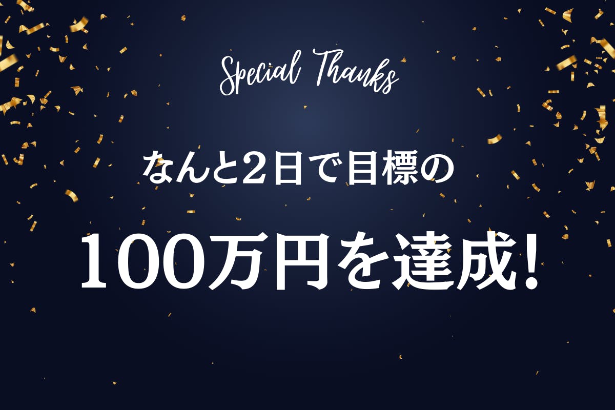 プロジェクト公開から2日でネクストゴール100万円を達成しました!ご支援ありがとうございます!