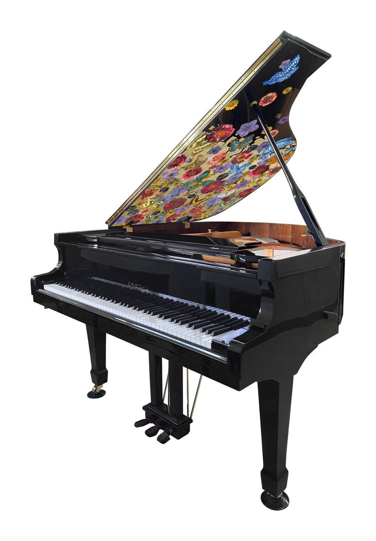 ・遠州楽器のグランドピアノに、現代日本画家 大竹寛子による平和の象徴を描いたもの