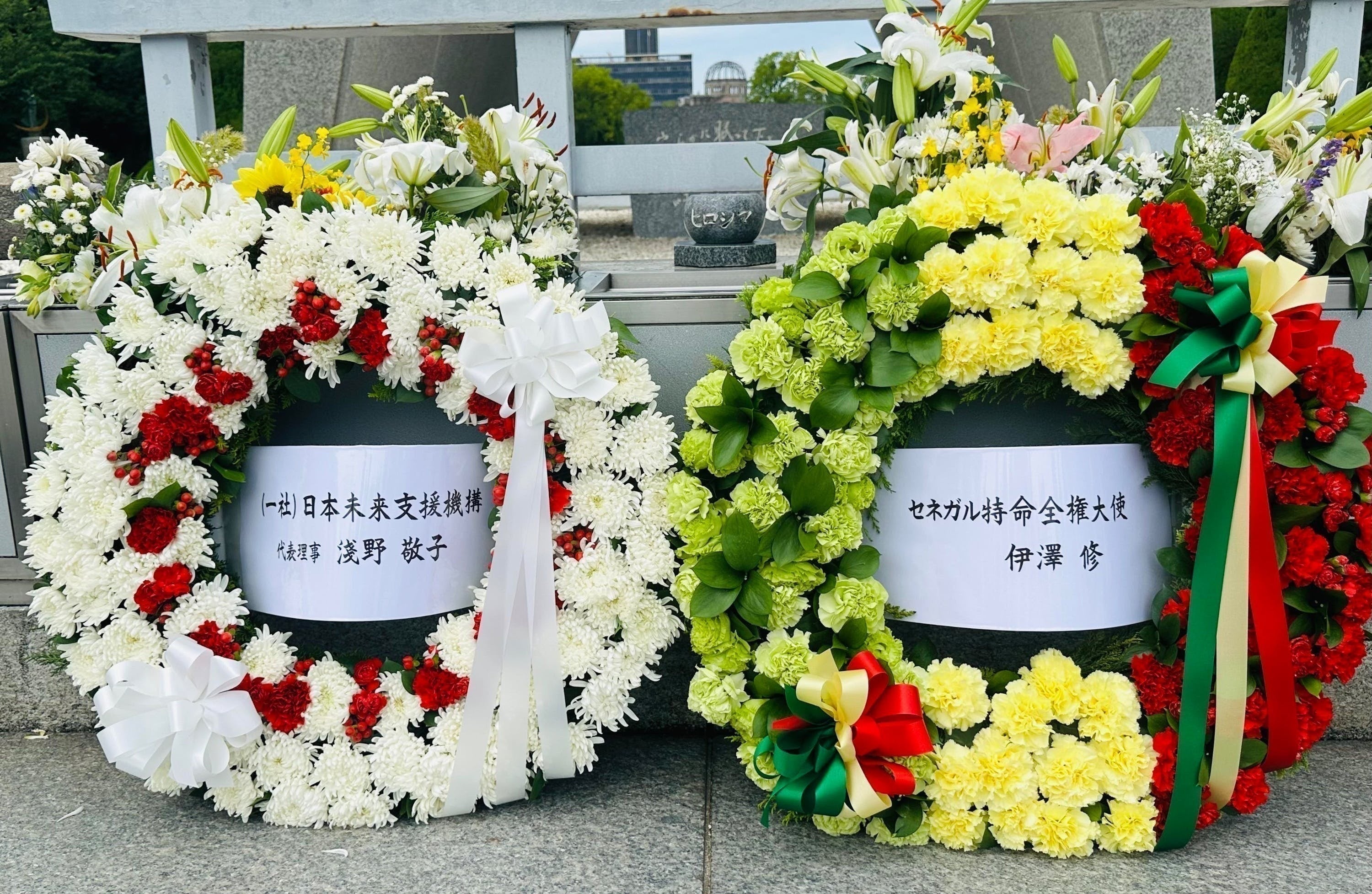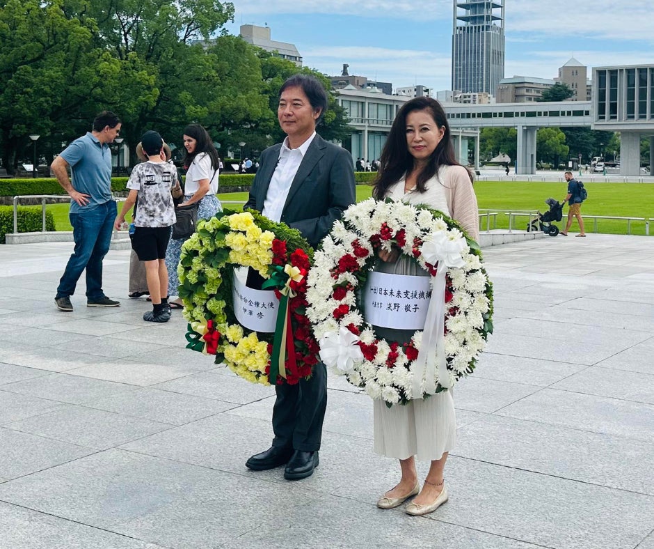 共に広島平和記念公園で献花をする様子