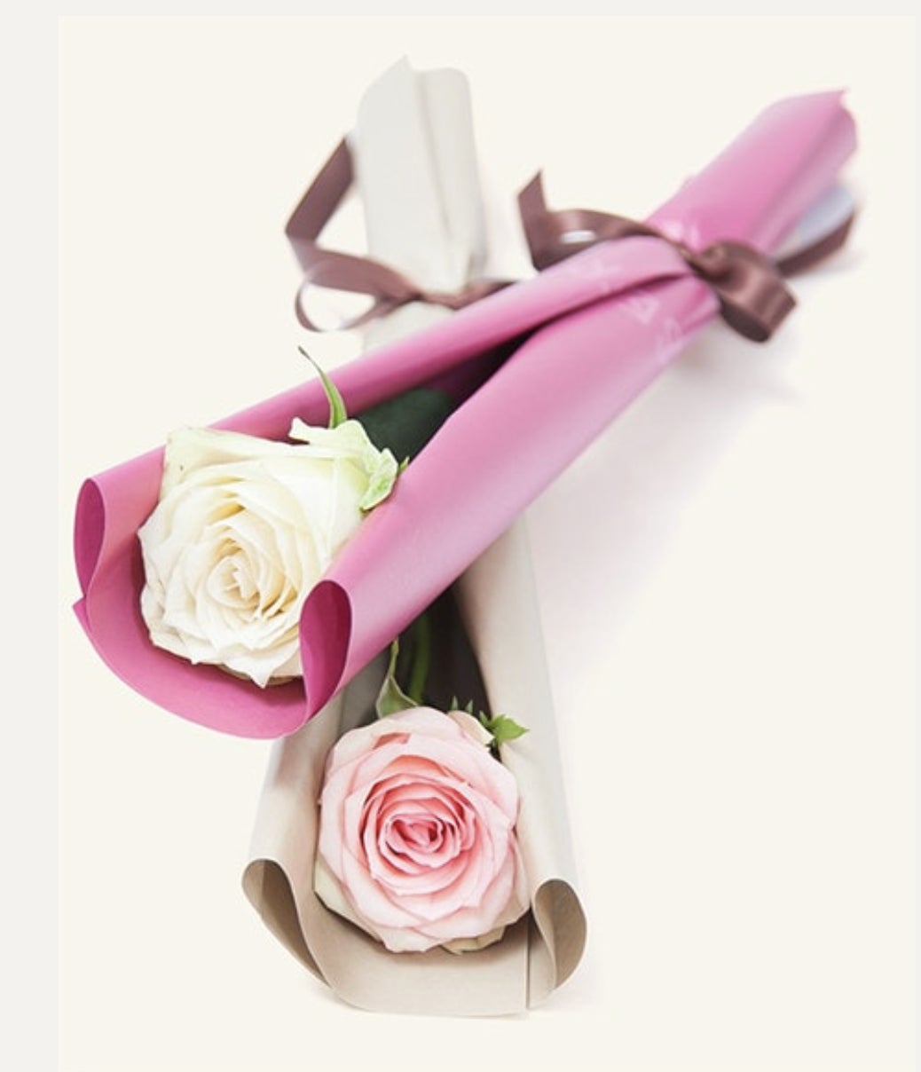 このアフリカローズを、ご自身用のローズと献花用の2本ご用意します、