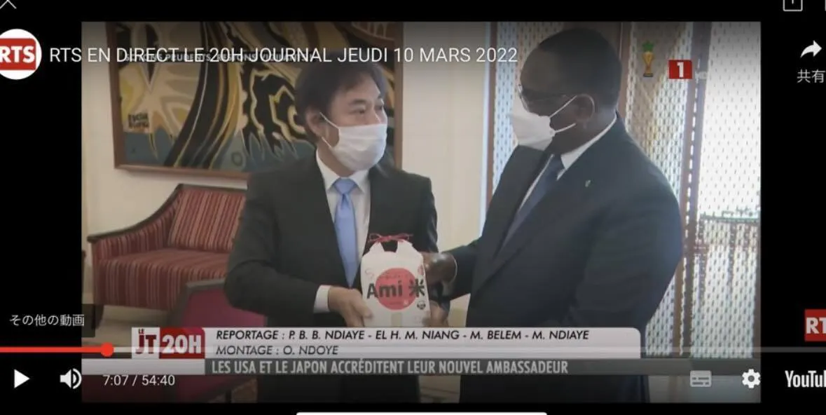 セネガル大統領へのお土産としてAmi米を渡してくださっている様子