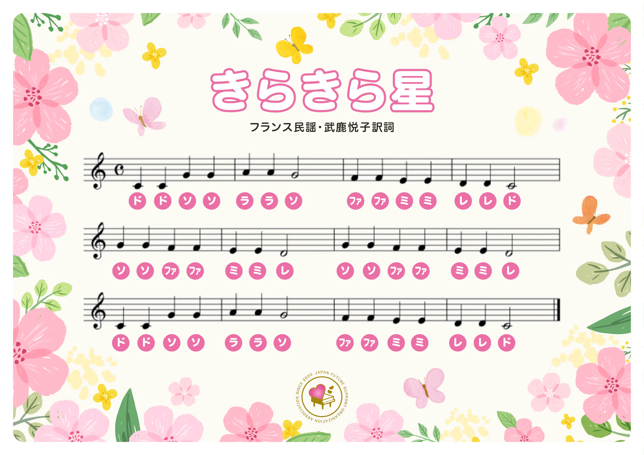 このキラキラ星を、平和の祈りを込めたデザインを施し、楽譜にしました。