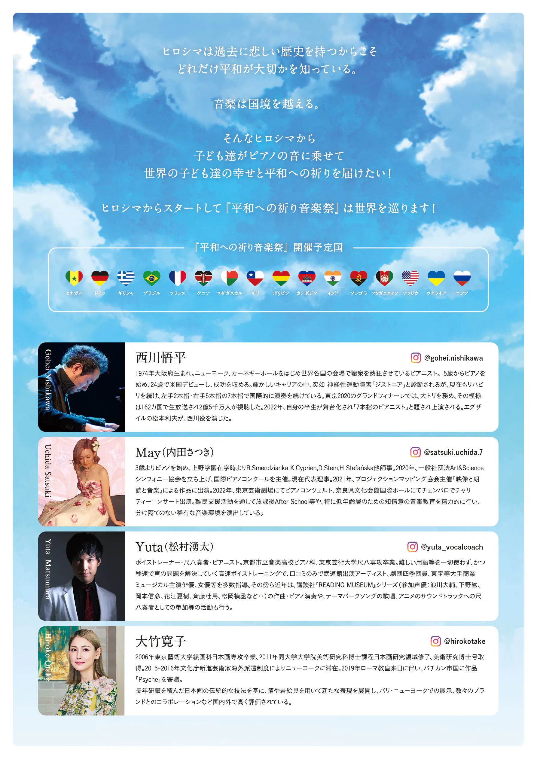 今回の平和への祈り音楽祭を記念した、西川悟平による特別コンサートへご招待させていただきます。