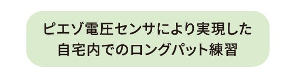 PUTTISTⅡ本体部分にピエゾ電圧センサーがあり、打った打球がセンサにあたることで「どのくらいの距離実際のグリーン」だと進んだかを計測できます。 20mの強さまで計測する事ができます。
