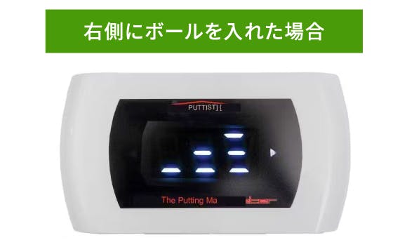 パットされた距離をデジタル数値で計算します。正確な中央打点の場合、方向警告灯は表示されません。