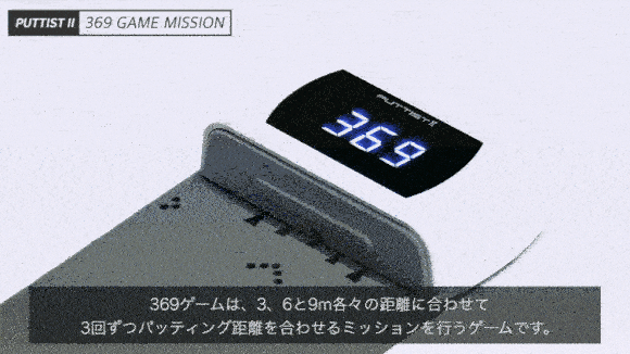 PUTTISTⅡでは、ディスプレイ面積を広げて見やすくしたばかりか、レーザー機能で方向性のトレーニング、過去15メートルだった測定距離を20mまで拡張してロングパットの練習にも対応させました。 また、色んな所で練習したい!という要望に応えてバッテリー式にして好きな場所で練習することができるようになりました。そしてなんといっても極めつけは過去最高難易度の20メートルまでの9個のランダムモードを搭載させました! 9回連続させることができればもうグリーンの上でパットに不安をもつあなたはいなくなること間違いありません!