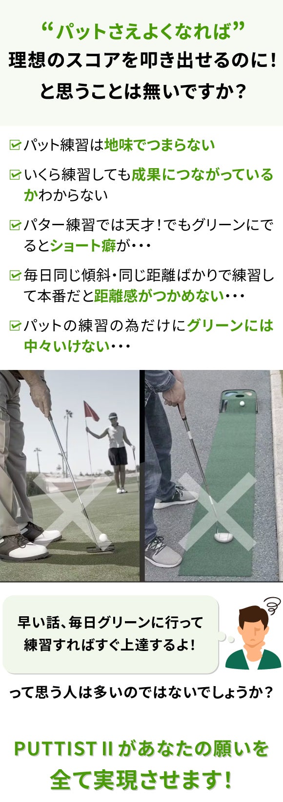 2.室内でマットを使用した練習では、ロングパットの練習ができず、また練習が地味で長続きしない。