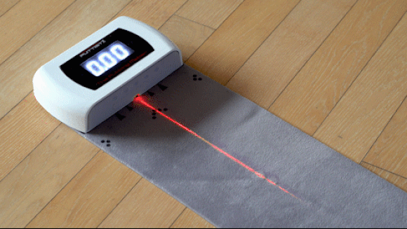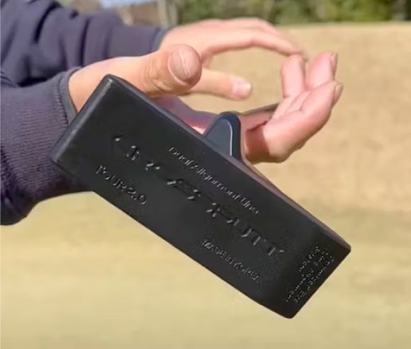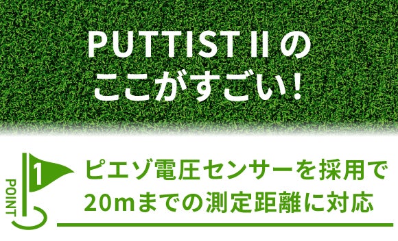 PUTTISTⅡ本体部分にピエゾ電圧センサーがあり、打った打球がセンサにあたることで「どのくらいの距離実際のグリーン」だと進んだかを計測できます。 20mの強さまで計測する事ができます。