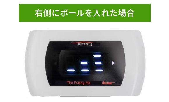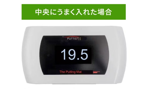 パットされた距離をデジタル数値で計算します。正確な中央打点の場合、方向警告灯は表示されません。