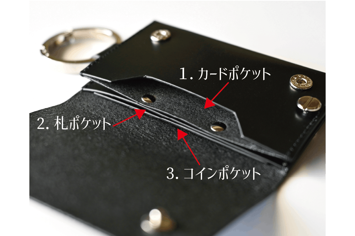 しかし、マルチキーウォレットはキーケース同様の動きで財布を開ける事なく鍵の出し入れがしやすい作りに制作!