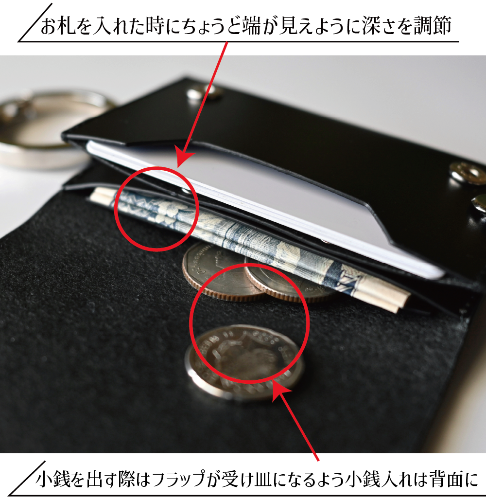 しかし、マルチキーウォレットはキーケース同様の動きで財布を開ける事なく鍵の出し入れがしやすい作りに制作!