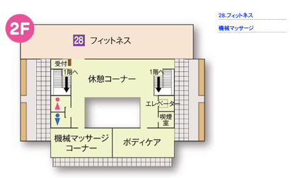 2Fはフォットネスコーナーとボディマッサージを楽しんでもらえる癒しの空間。