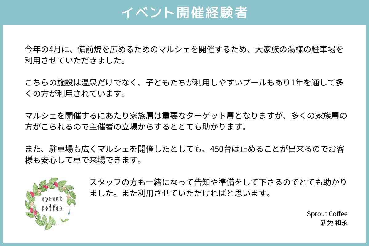 大家族の湯をイベント会場で利用してみたいという皆様に、