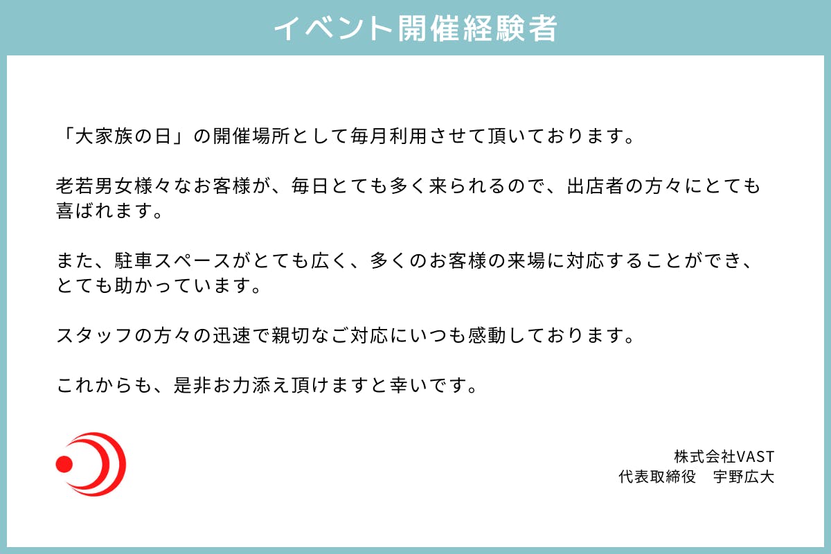 開催してきましたが、今後も更に、様々な企業様の出店やイベントを実施し、