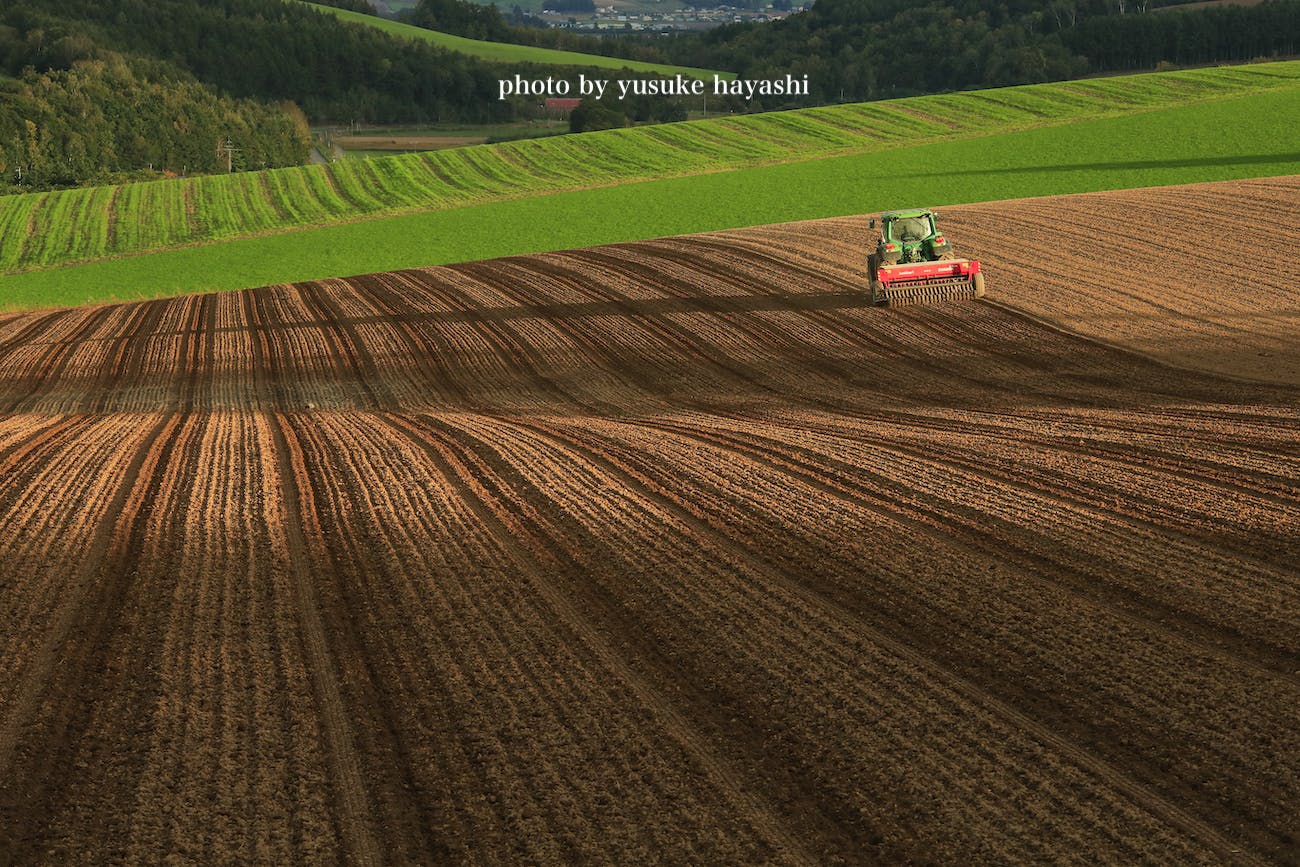 今畑はもう冬の準備。刈り取られて整地をしている最中なのですが、そのラインが美しい。