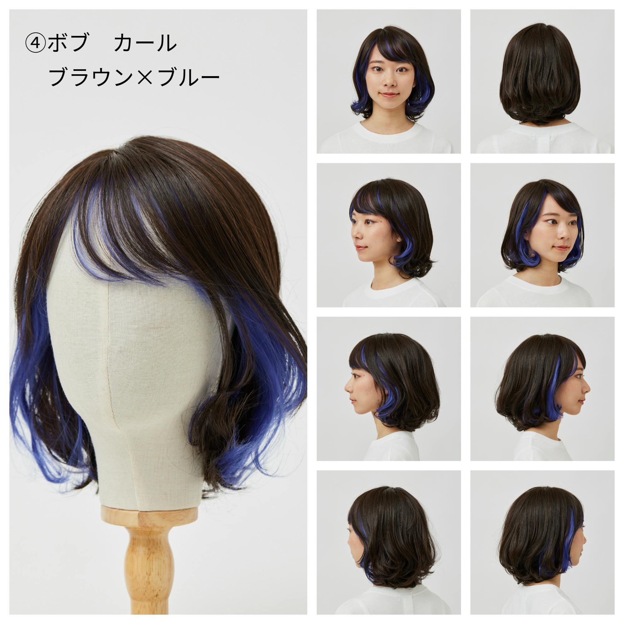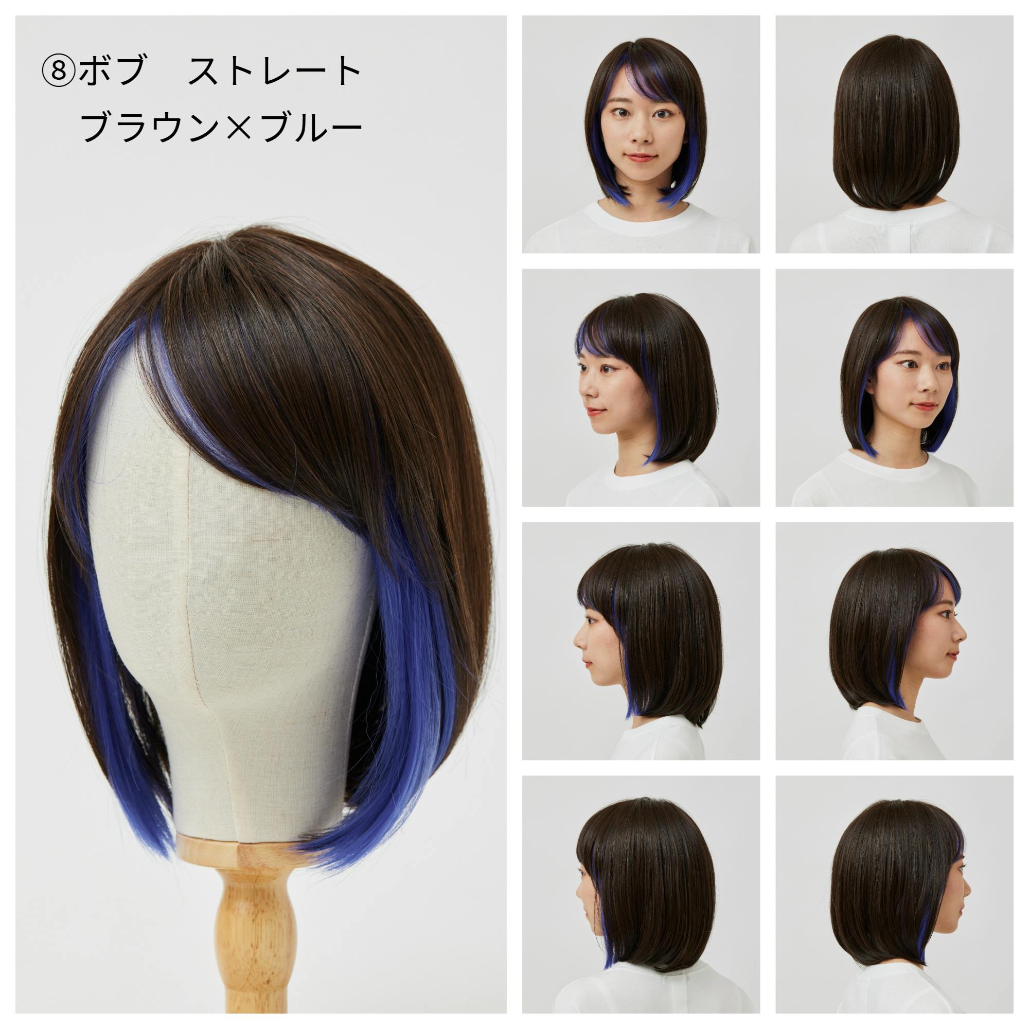 ⑧ボブ ストレート ブラウン×ブルー
