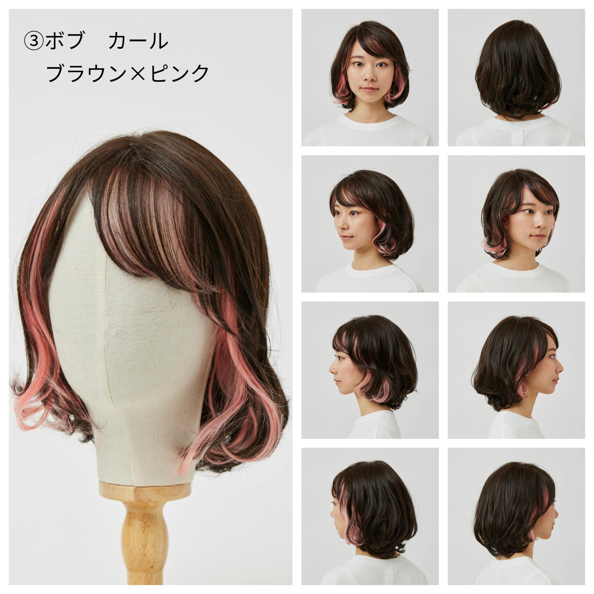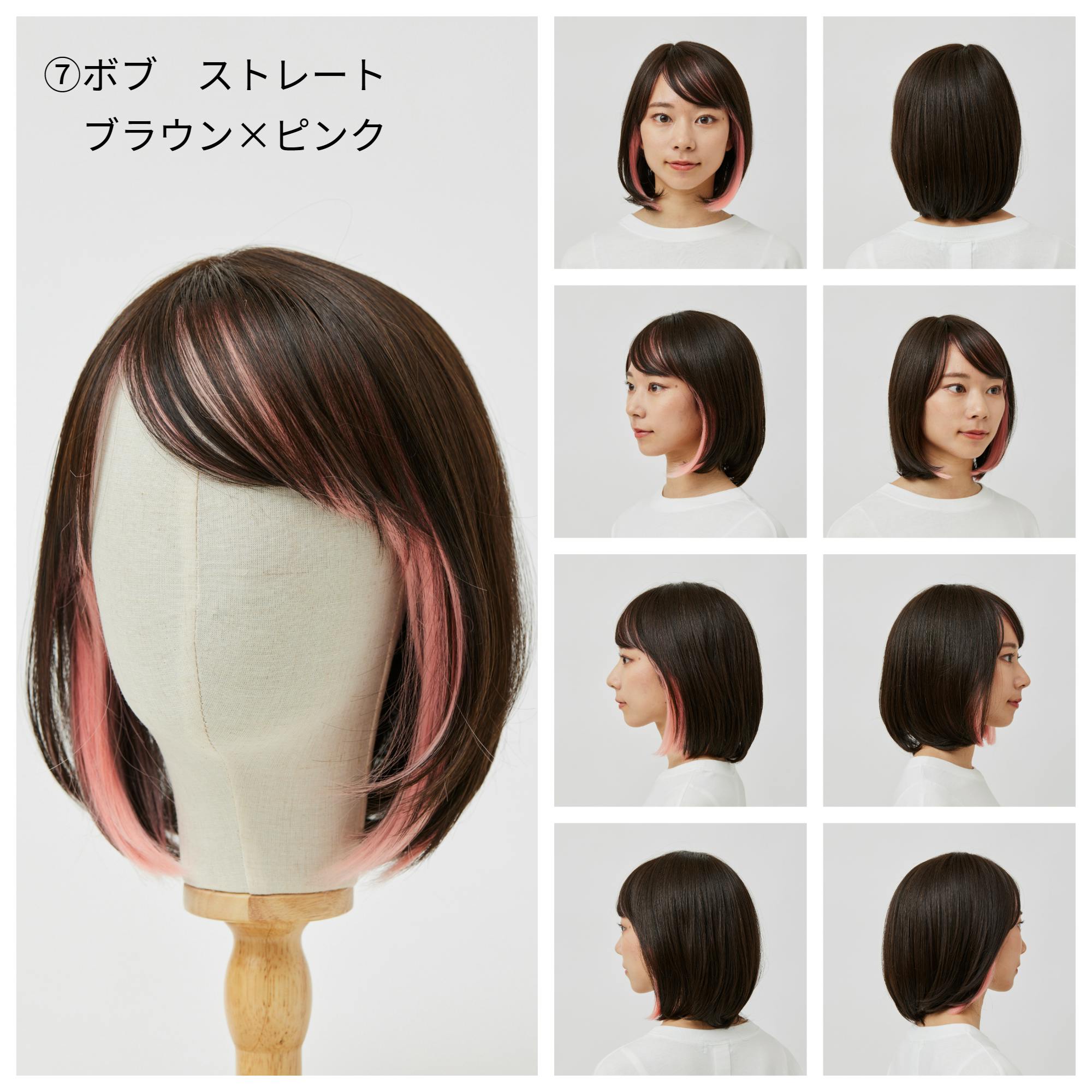 ⑦ボブ ストレート ブラウン×ピンク