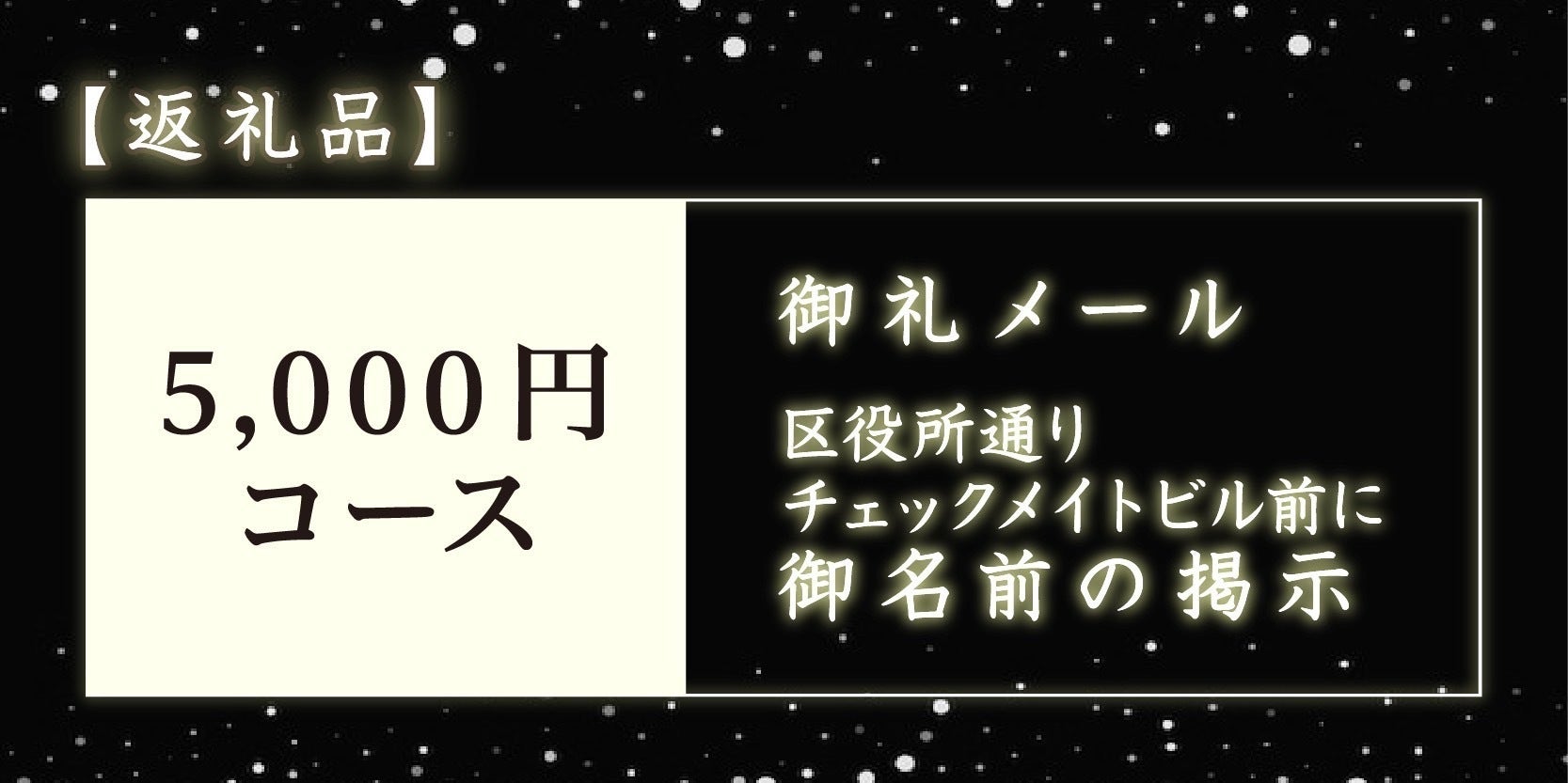 →御礼メール、区役所通り「チェックメイトビル前」に御名前の掲示