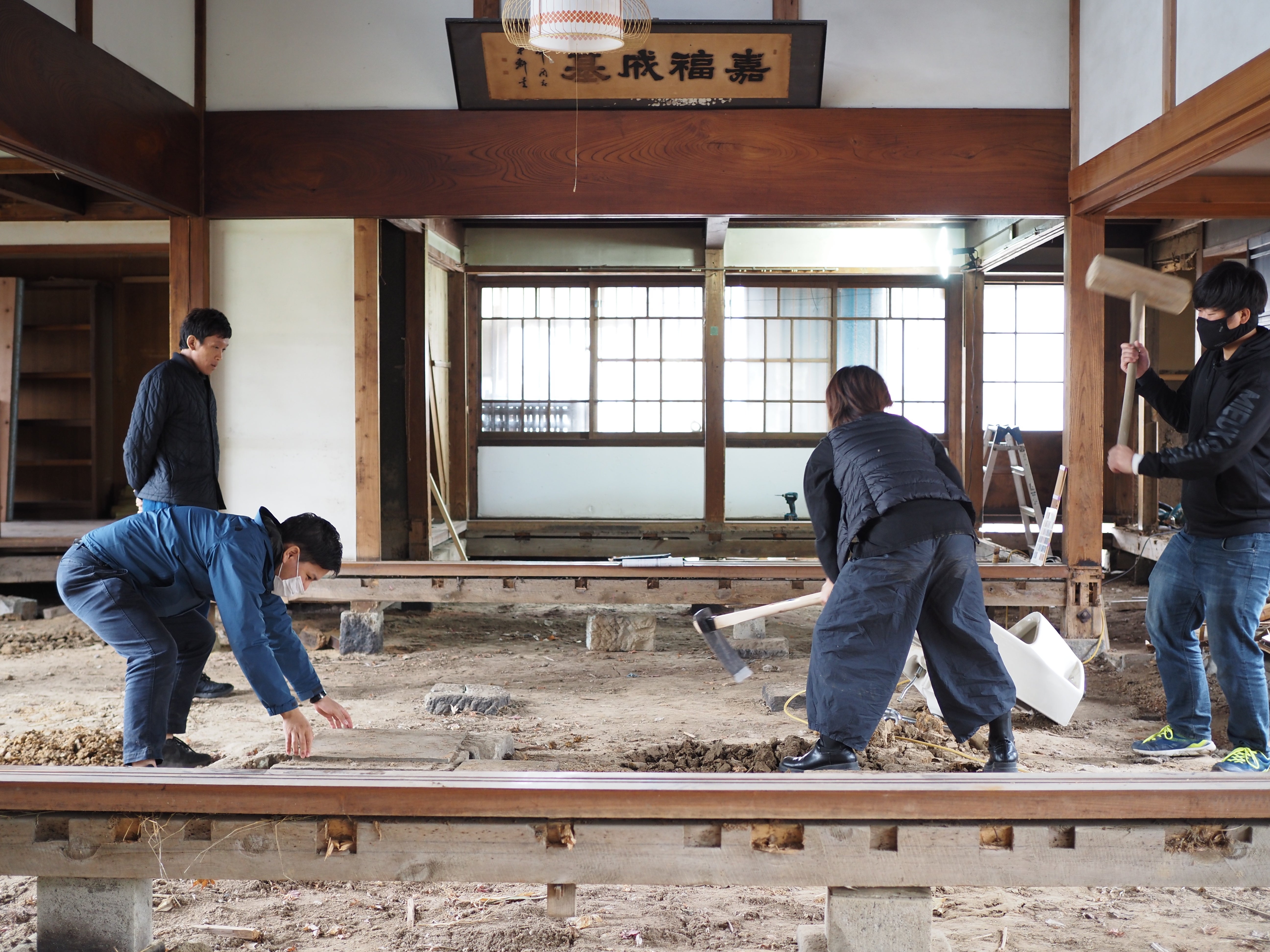 地域の方にも手伝っていただいたり創作をたのしんでいただきながら改装はほぼ終了し、佳境に入っています。大きな建物なので、古い趣を残したりまだ手付かずな部分もありながら、10月にはやっとベッドや家具の搬入も始まります。 「感性のスイッチ」を入れ、お客様がそれぞれの「劇場」(フレーム/モノの見方)を持ち、緩やかに表現を共有していける場づくりをするため「遊び心」や「異素材の融合」をキーワードに体験や設えを整えていきます!