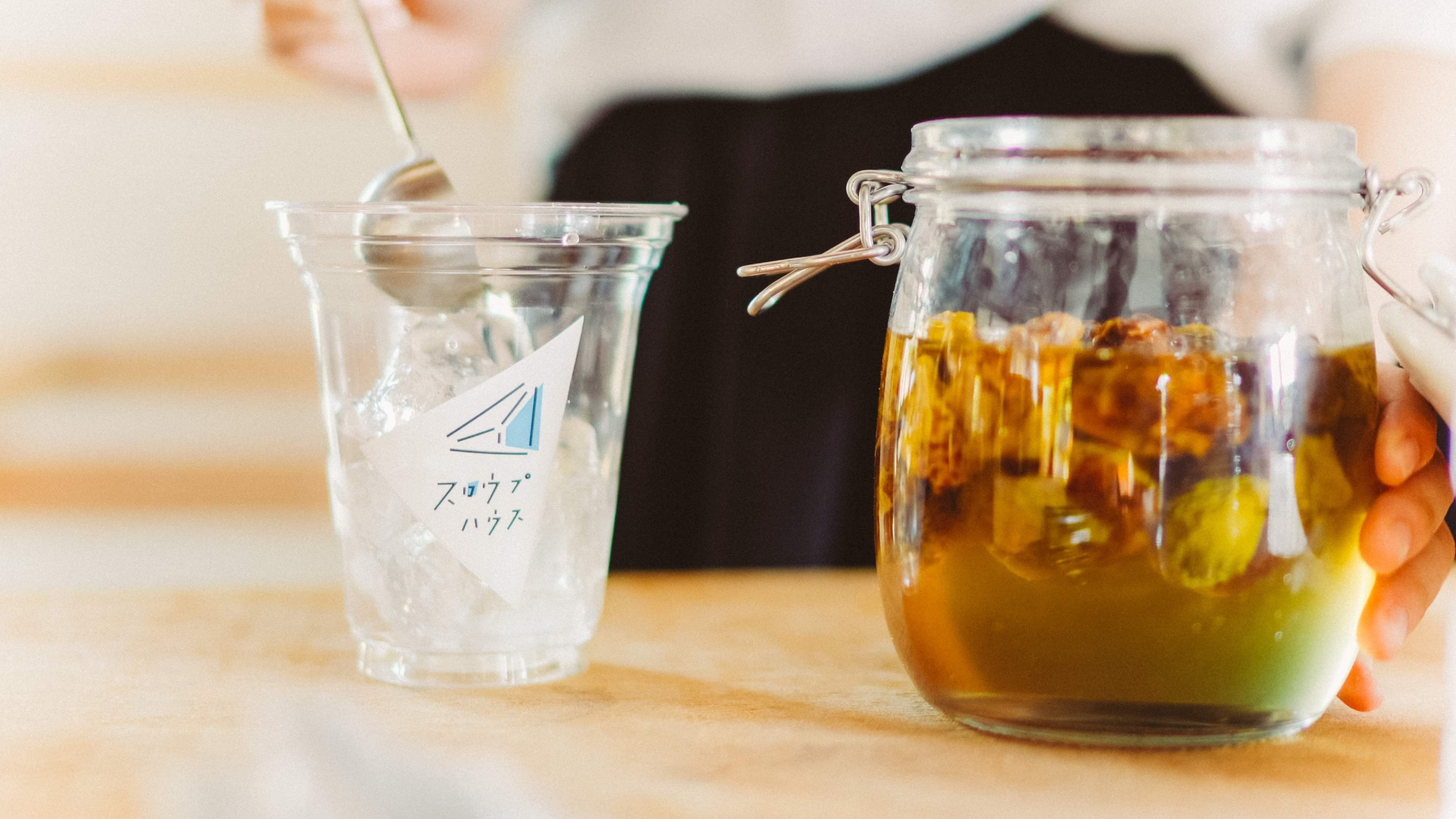 (秋葉山の野草茶/よもぎラテ/よもぎレモンティー/タカツカ農園の梅を使った自家製梅ジュース)