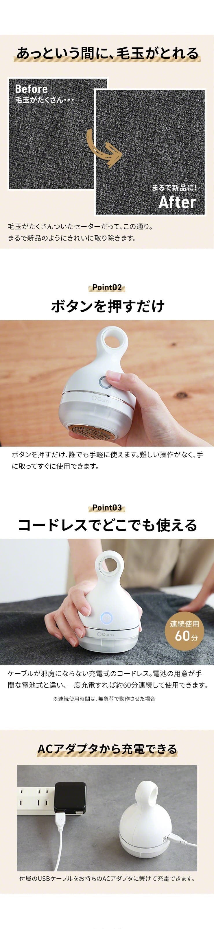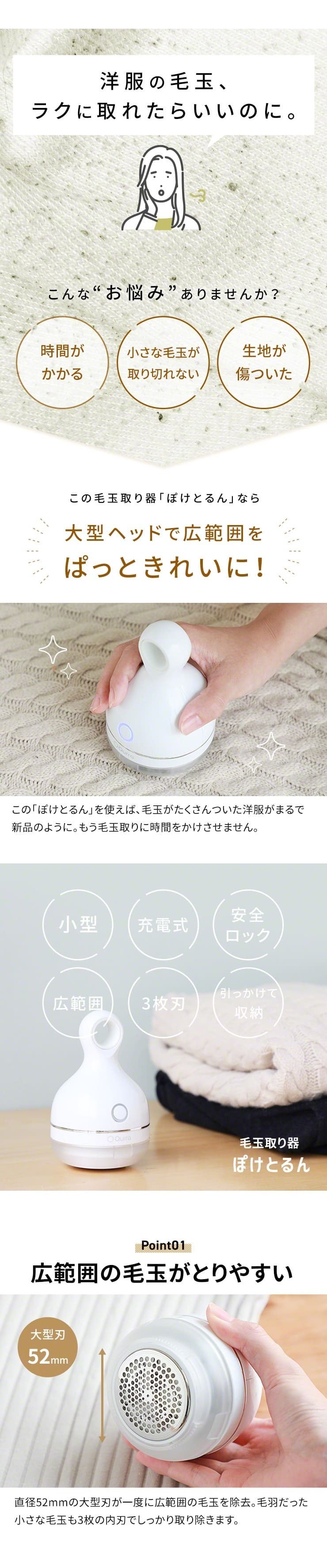 商品名:Qurra 毛玉取り器 ぽけとるん