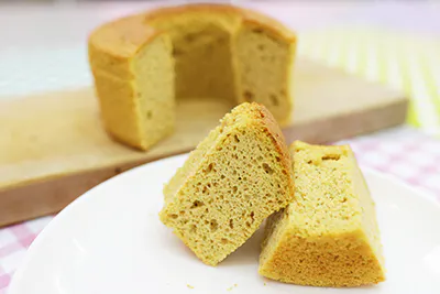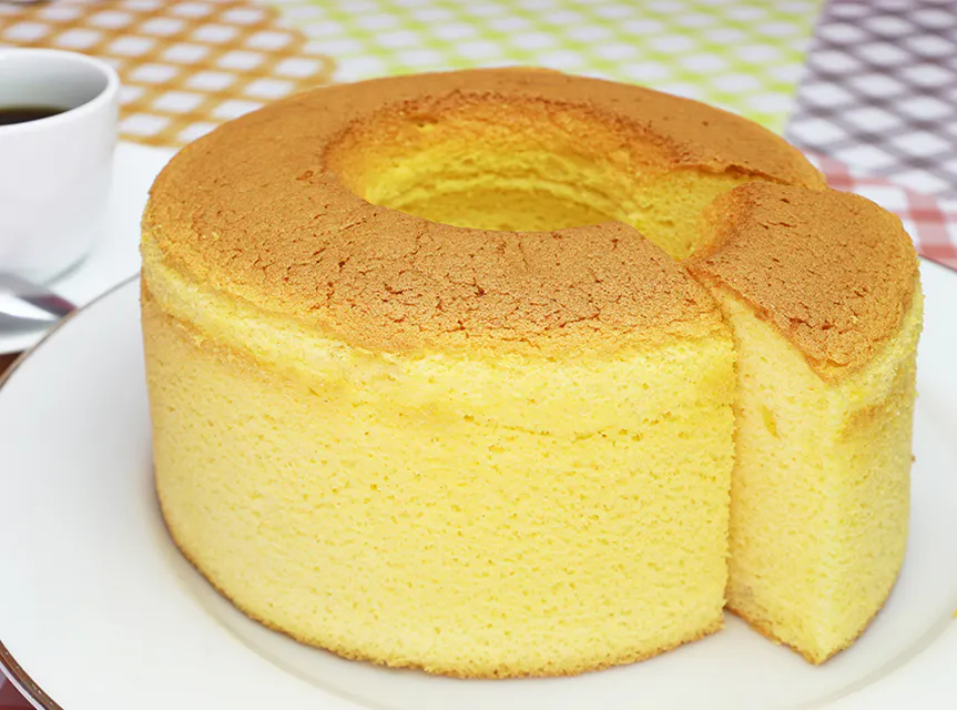 絹のようなきめ細やかで滑らかなシフォンケーキ。口の中で溶けるような食感をお楽しみください。
