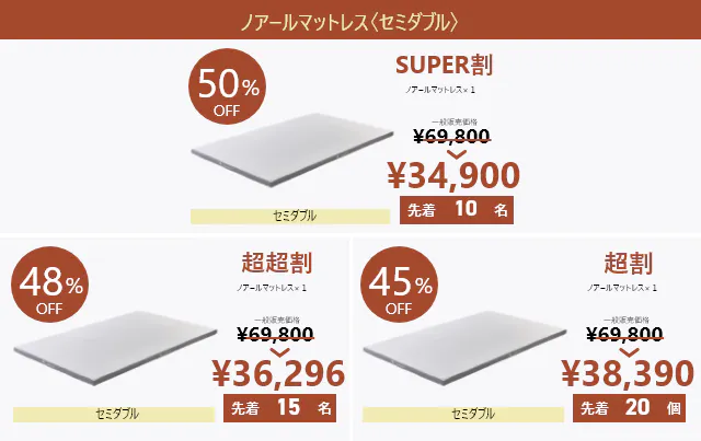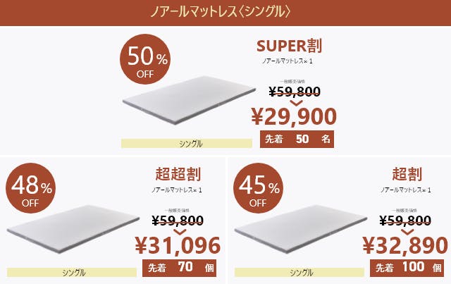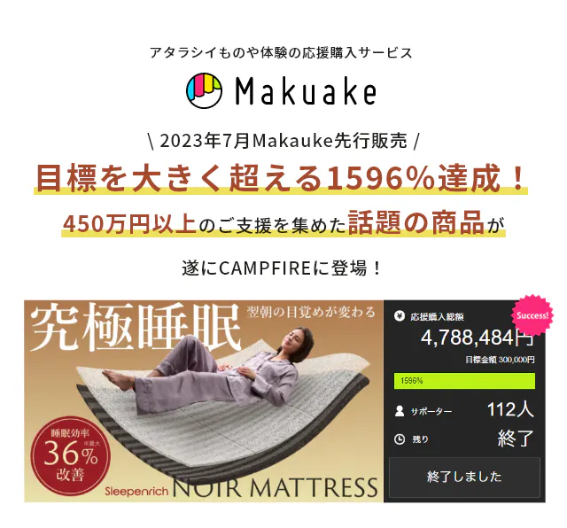 2024/10/31 12:30こんにちはプロジェクト実行者のライフェンリッチです。寝心地と身体への負担軽減を追求したマットレス『スリープエンリッチ ノアール』のプロジェクトが、いよいよ本日<23:59>に終了いたします。【50%OFF】の特別価格でご購入いただける数量も残り僅かとなってきております。この機会を逃すと手に入らないお得なリターンとなりますので、ぜひお買い逃しのないようご検討ください。既にご支援いただいた皆様には、心より感謝申し上げます。商品のお届けまで今しばらくお待ちくださいませ。それでは、プロジェクト終了までどうぞ最後までよろしくお願いいたします。 もっと見る【訂正】プロジェクト終了日について|スリープエンリッチ ノアール
