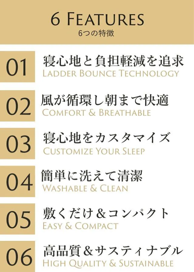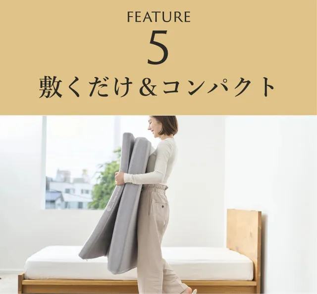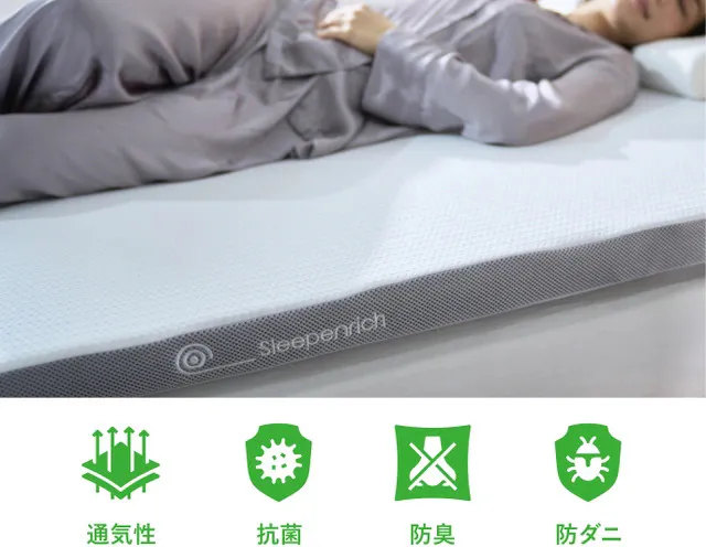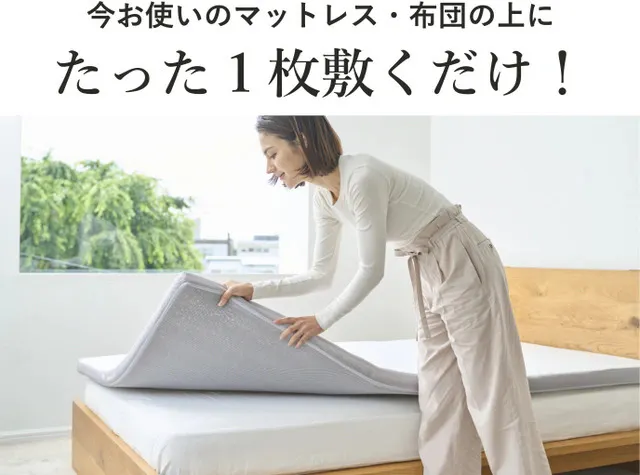 熱放散性に優れるため、全身に熱がこもりません。お手持ちのマットレスの上に敷くだけで、空気を逃しやすくし優れた通気性の良さで朝まで快適に眠れます。